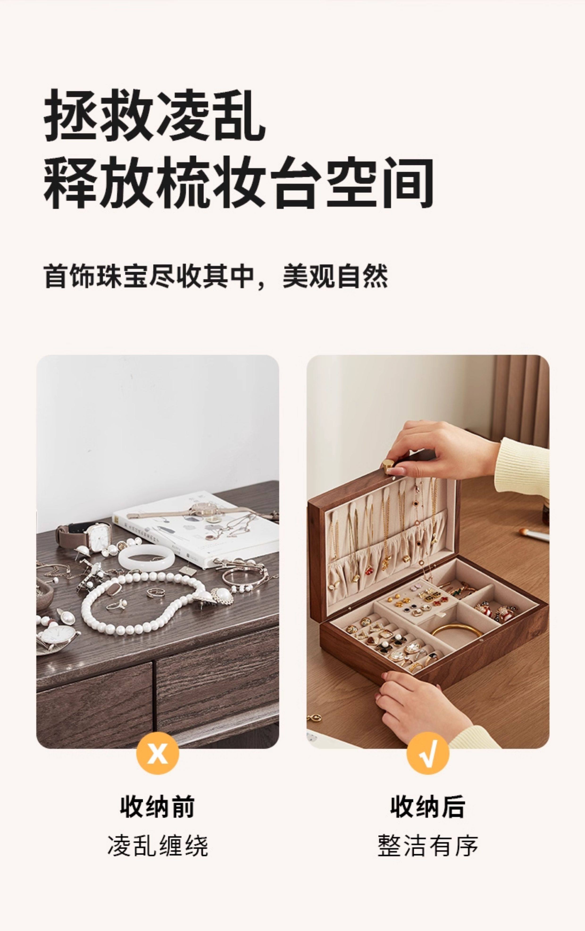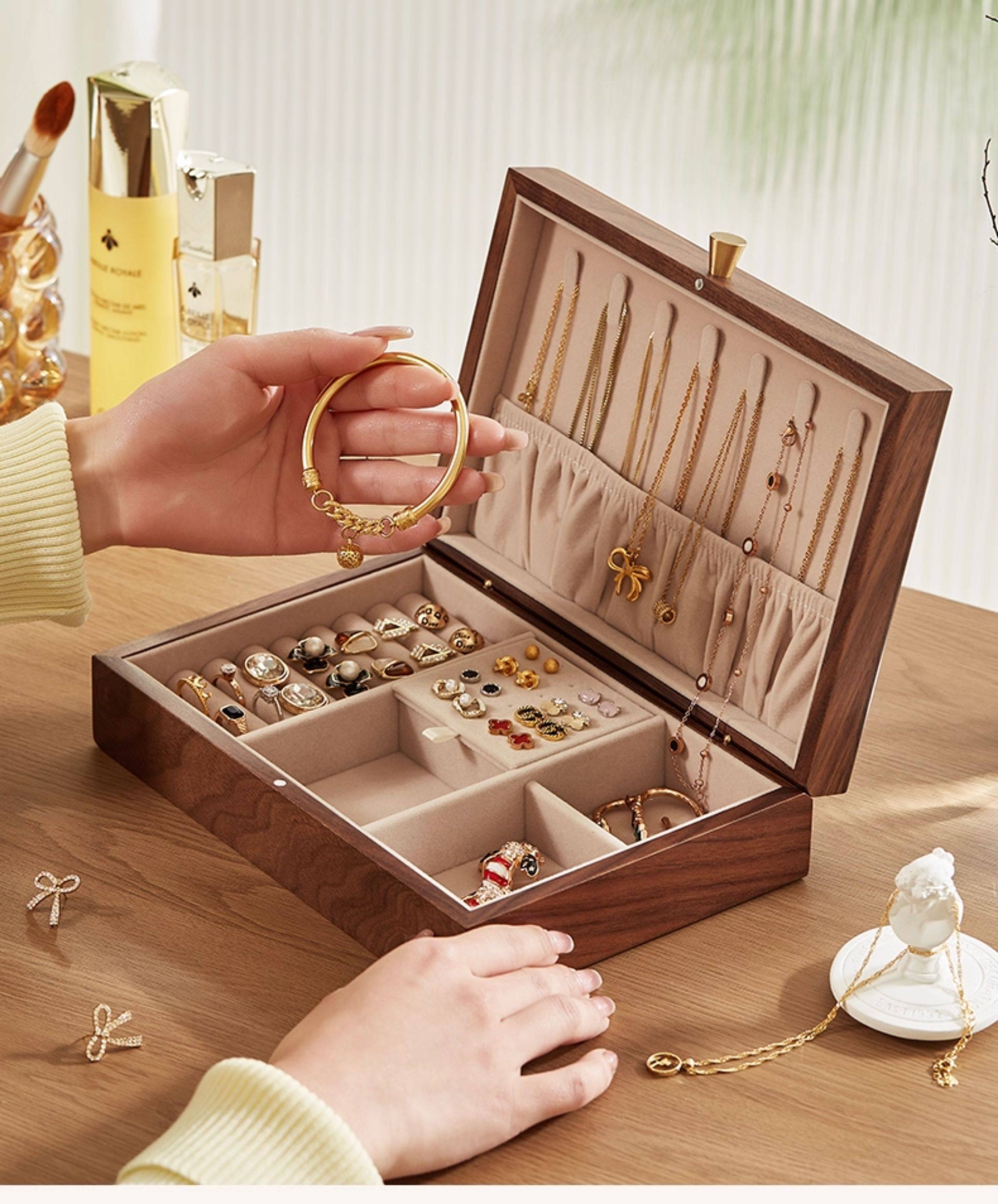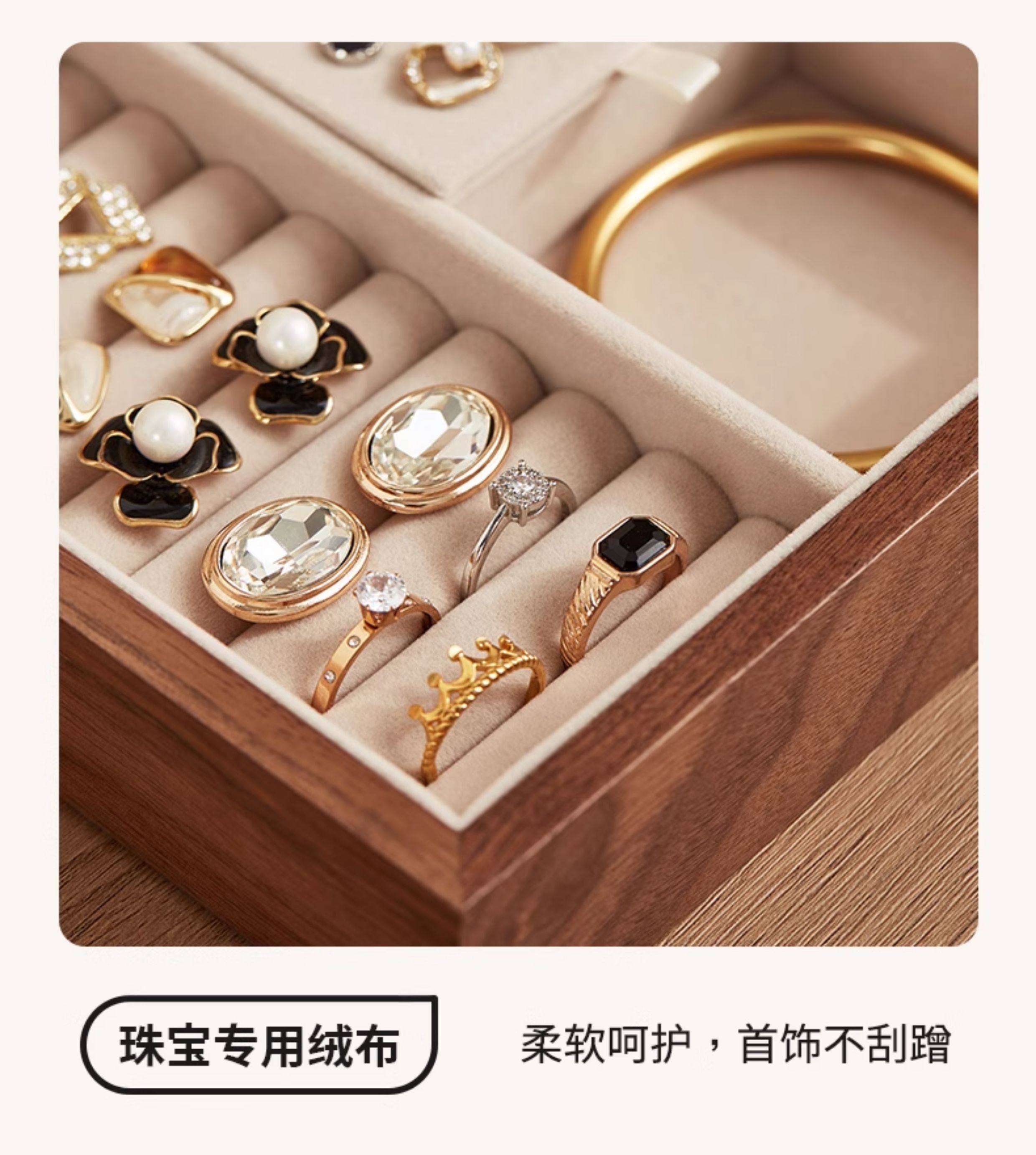 Walnut Solid Wood Jewelry Box, High-End Flip-Top Jewelry Storage Box, Birthday and New Year Gift for Best Friend, Girlfriend, Wife
