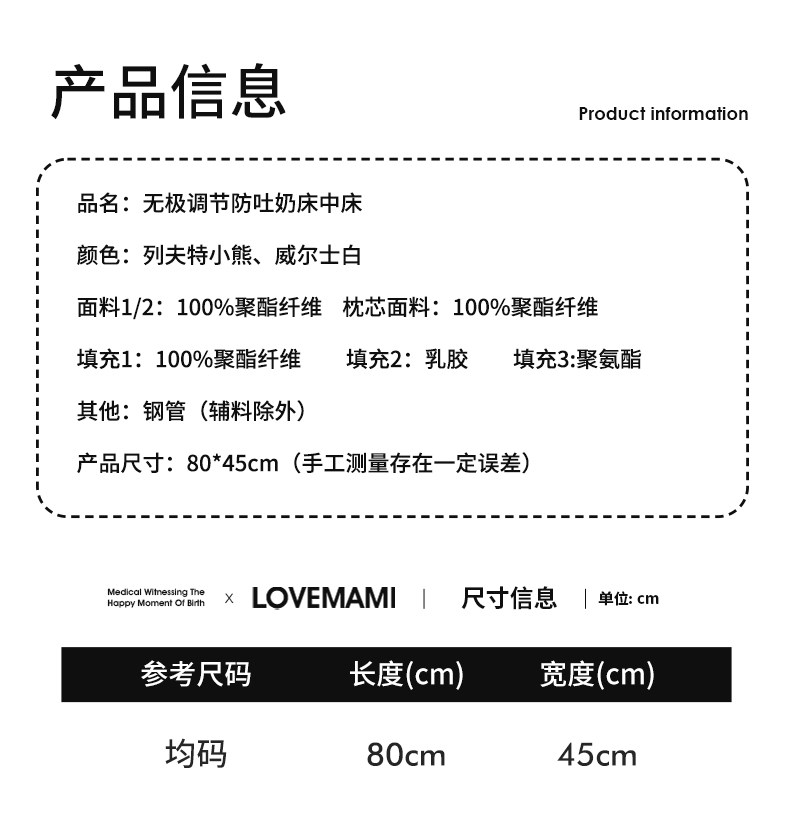 Подушка-наклонник Lovemami для младенцев, защита от рвоты, помощь при кормлении, приставная кроватка, для сна новорожденных, защита от испуга.