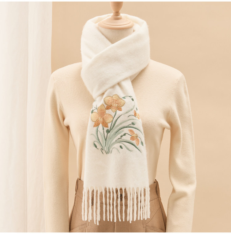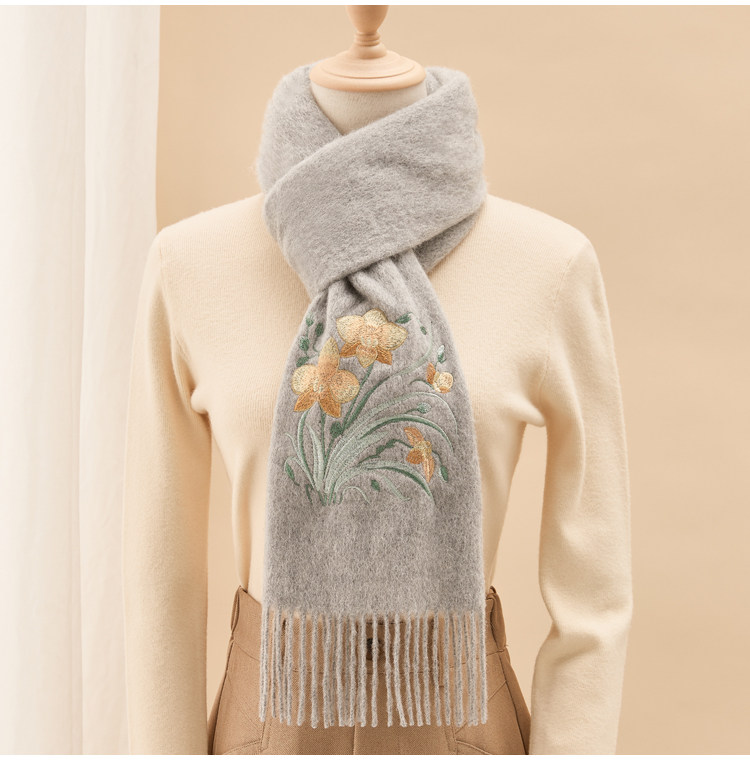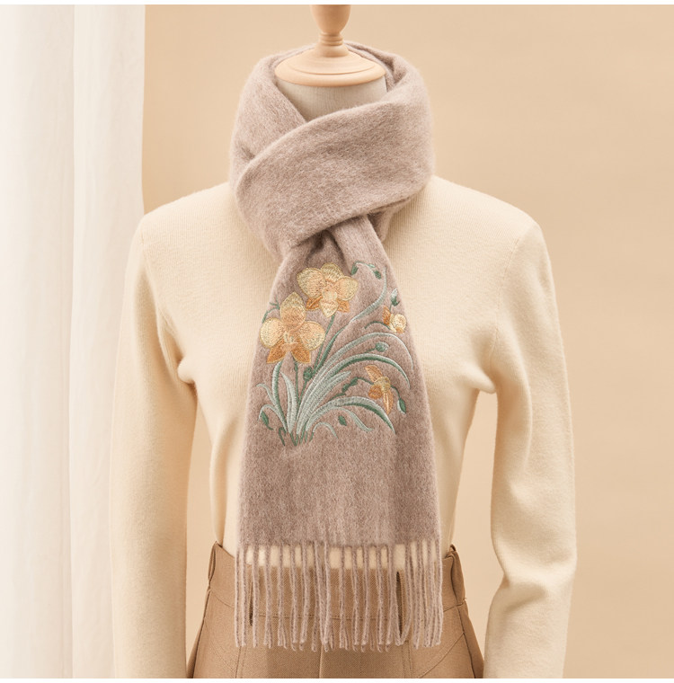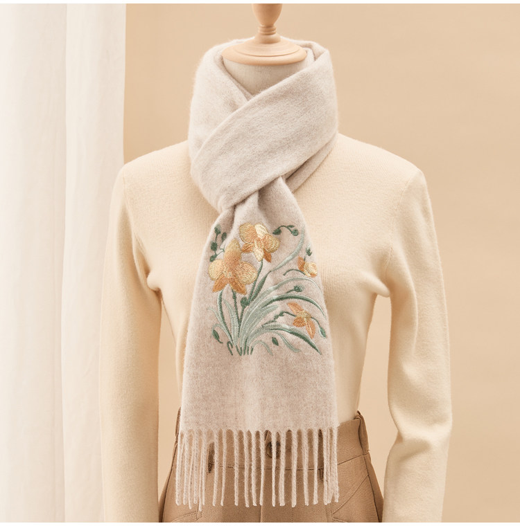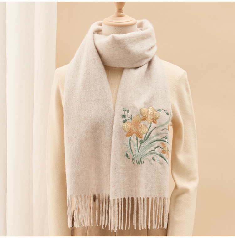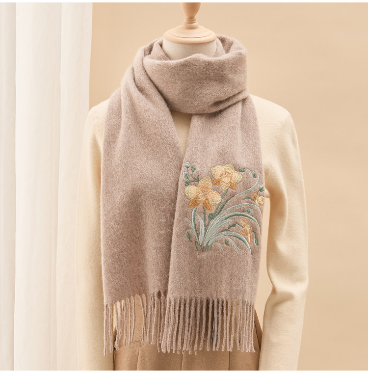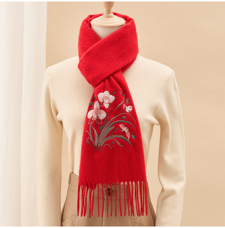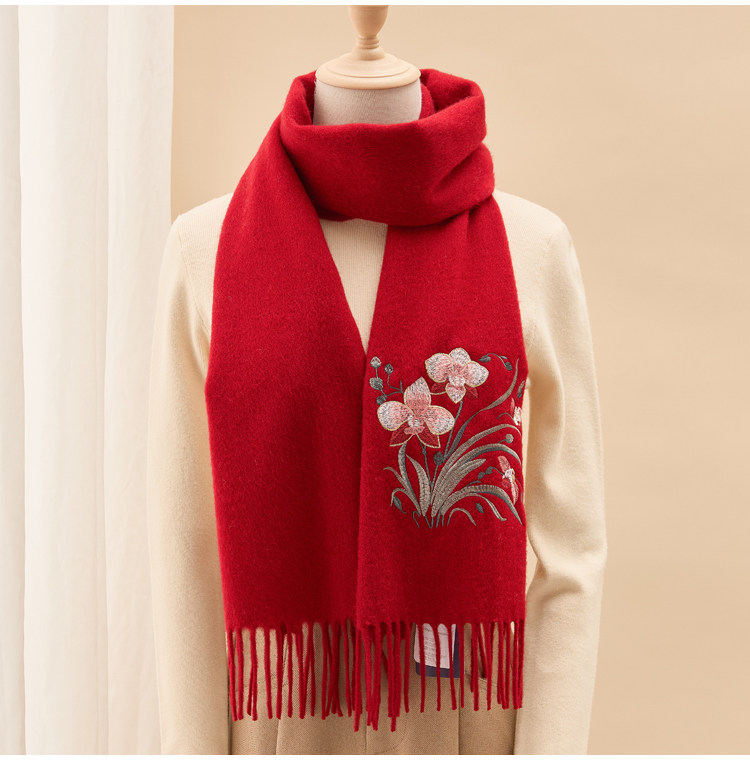 Вышитый шарф из 100% хлопка премиум-класса для женщин, зимняя шаль в китайском стиле с вышивкой, подарочная коробка, подарок на день рождения.