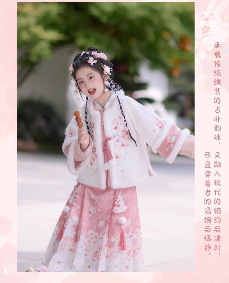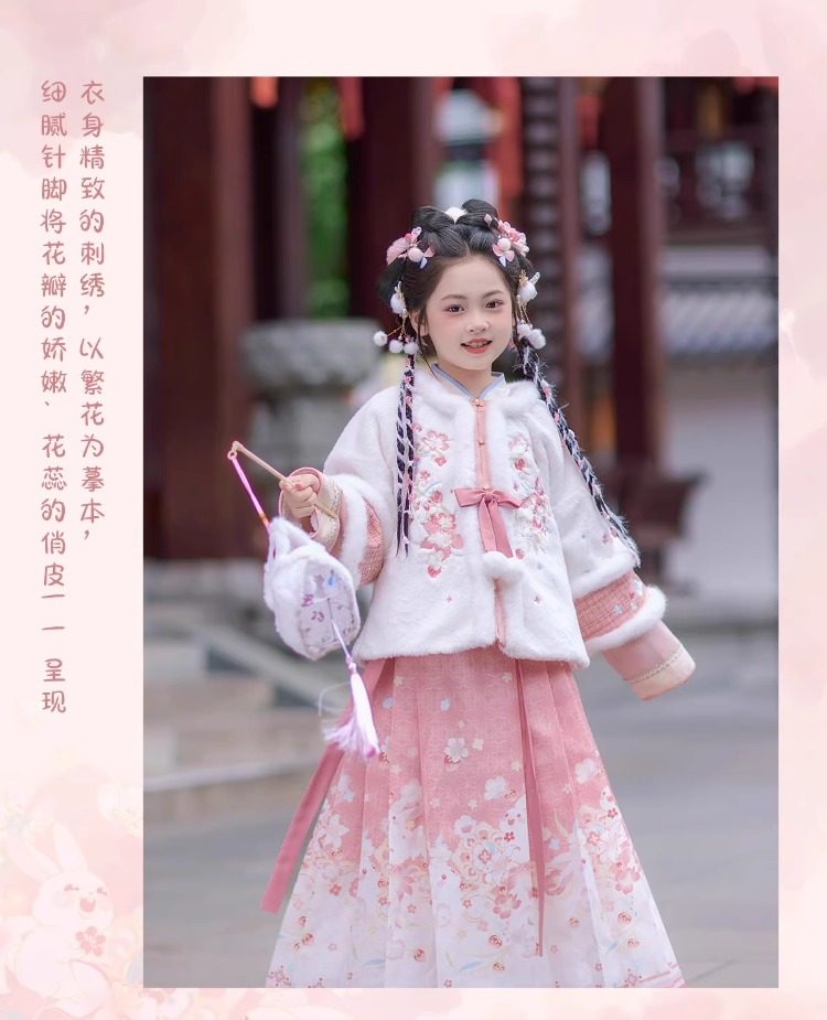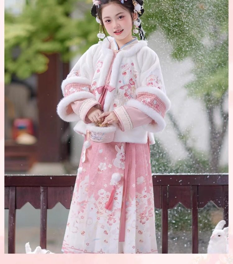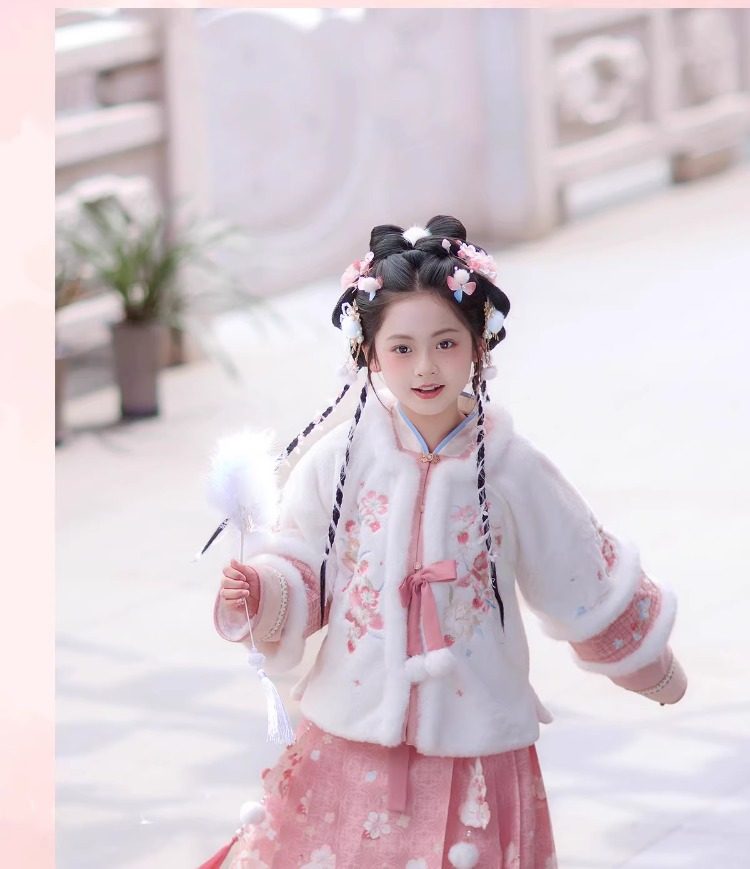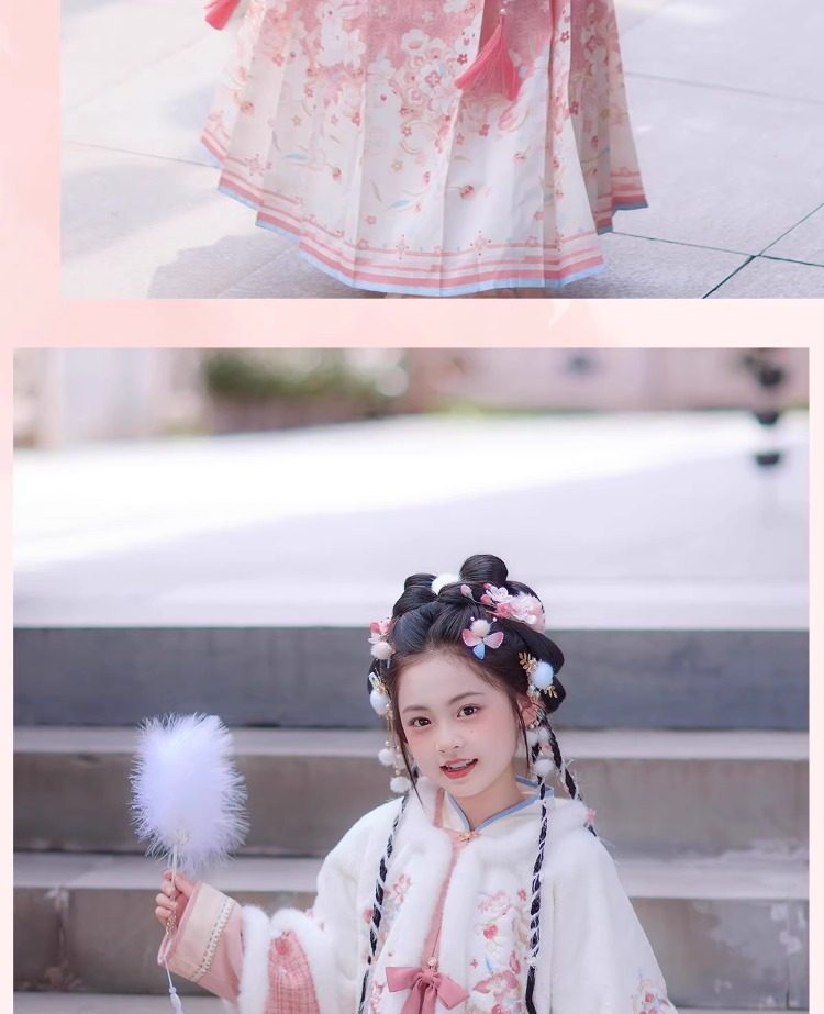 Girls' Pink Ming-Style Hanfu Winter Chinese-Style Children's Little Girl's Mamian Skirt Super Fairy-Like Fleece-Lined New Year Outfit Set