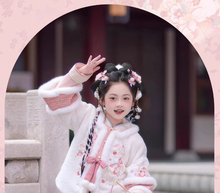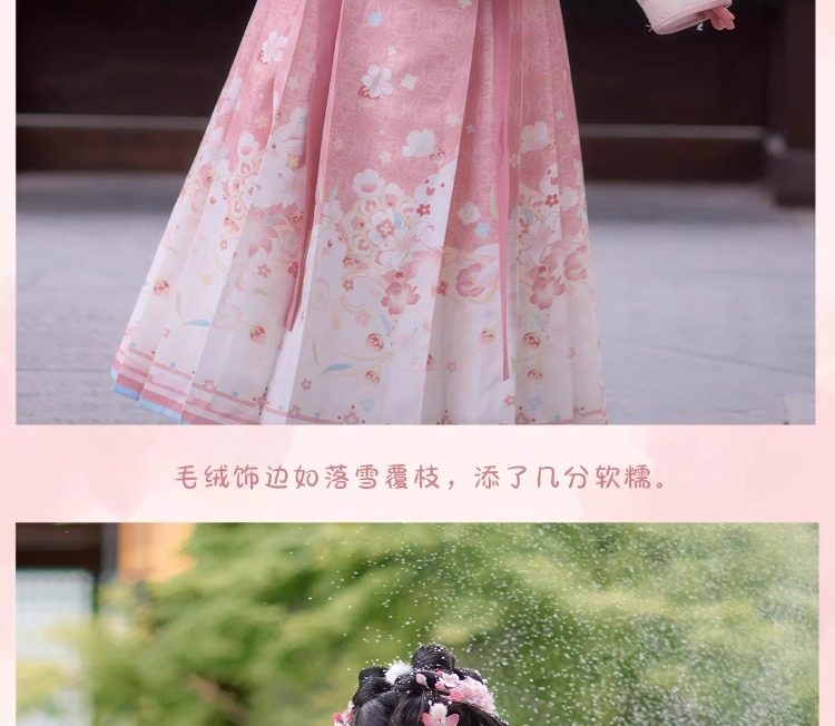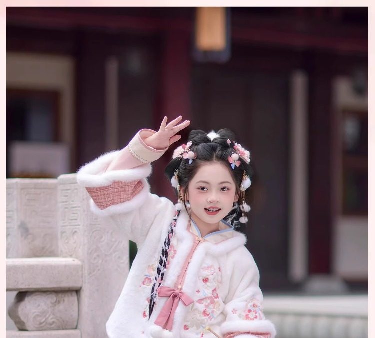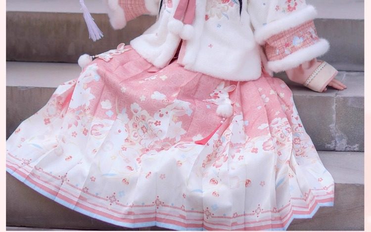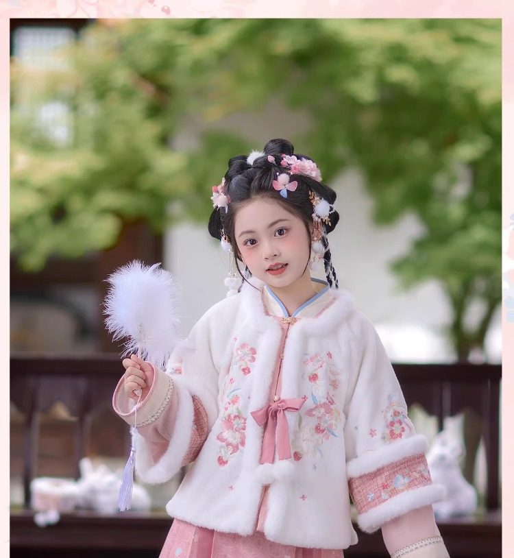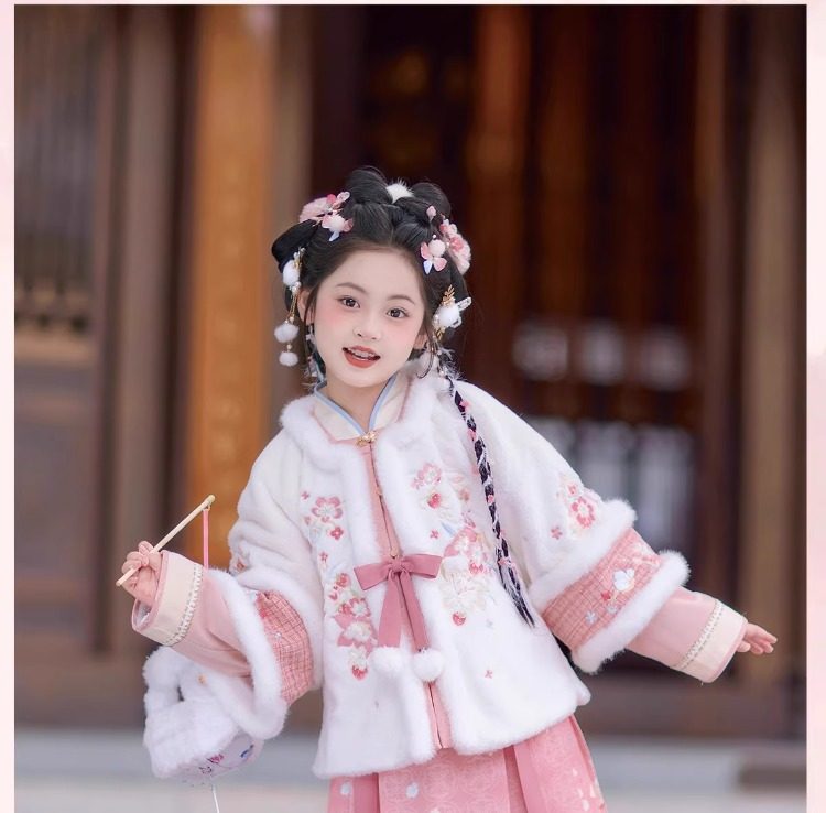 Girls' Pink Ming-Style Hanfu Winter Chinese-Style Children's Little Girl's Mamian Skirt Super Fairy-Like Fleece-Lined New Year Outfit Set