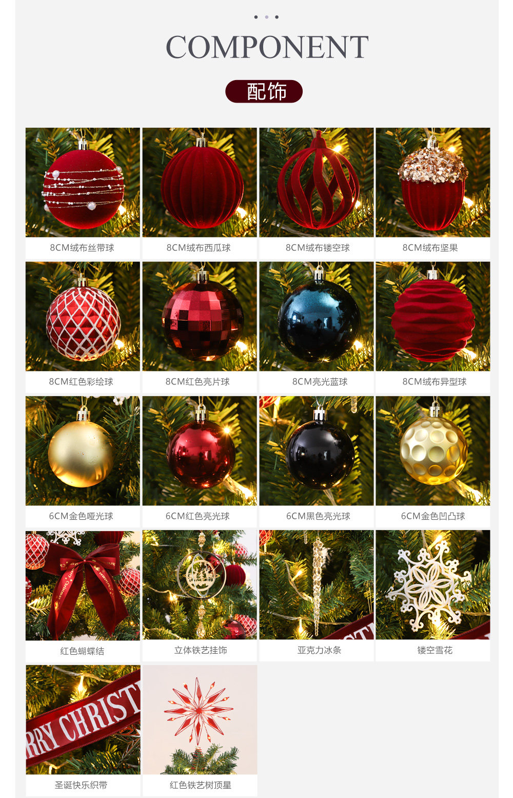 Sort by color 1.2 meters (tree + whole surface decoration + storage bag + tree surround + lights),1.5 meters (tree + whole surface decoration + storage bag + tree surround + lights),1.8 meters (tree + whole surface decoration + storage bag + tree surround + lights),2.1 meters (tree + whole surface decoration + storage bag + tree surround + lights),2.4 meters (tree + whole surface decoration + storage bag + tree surround + lights)