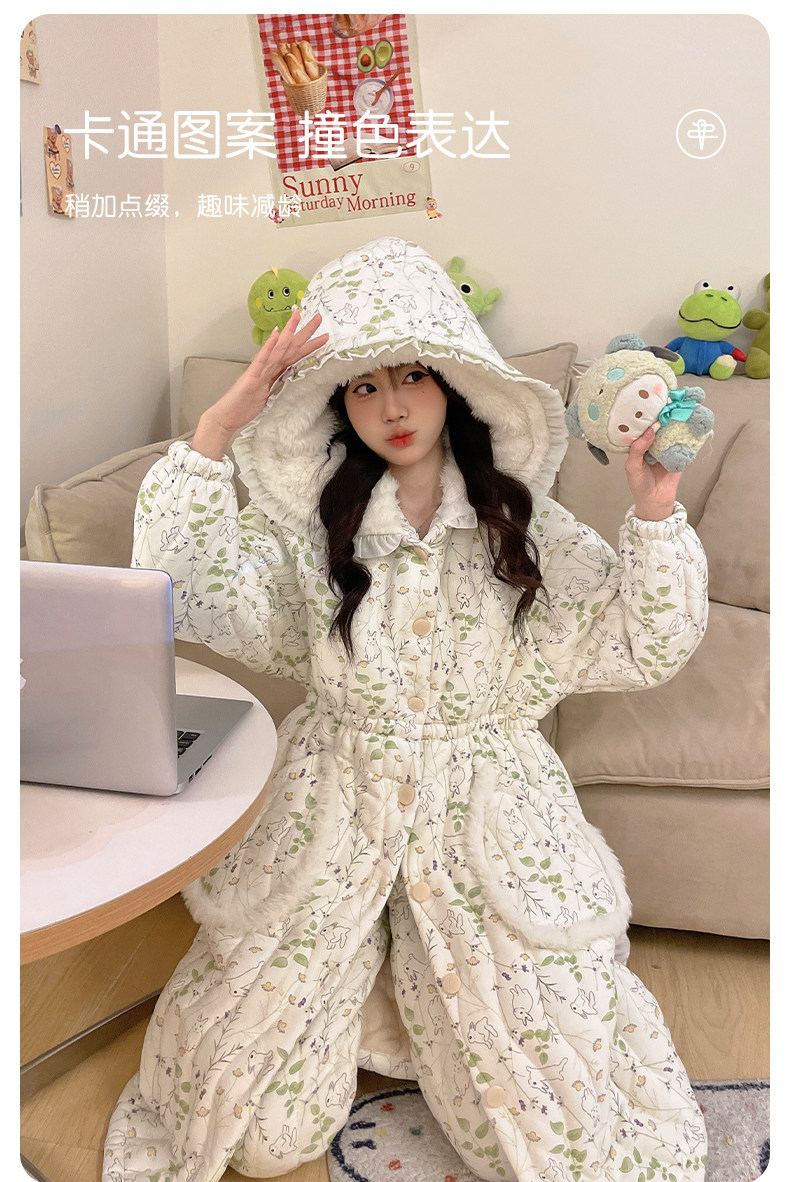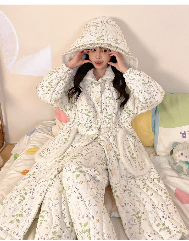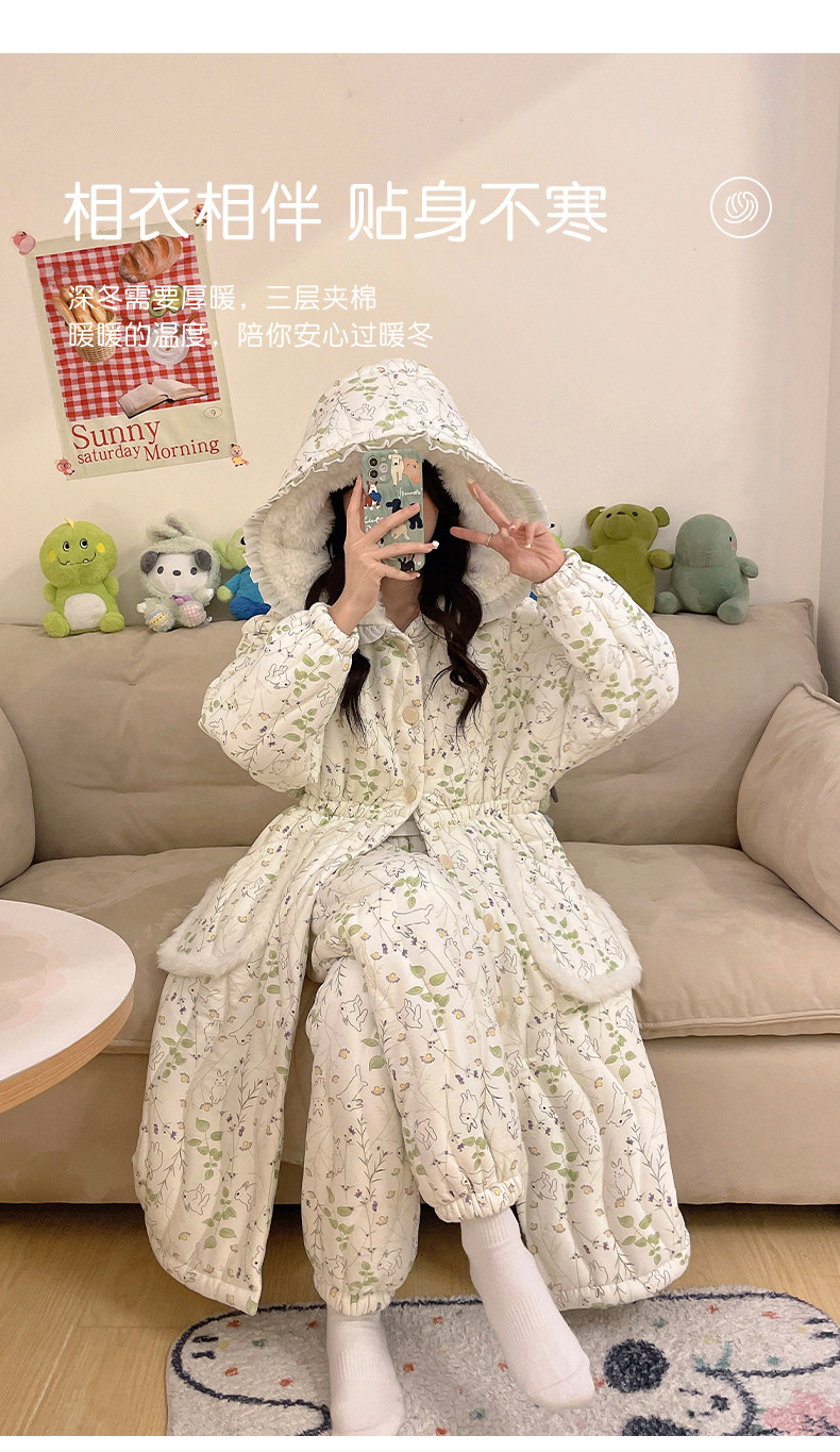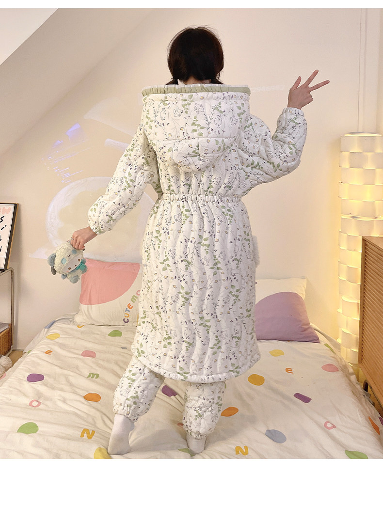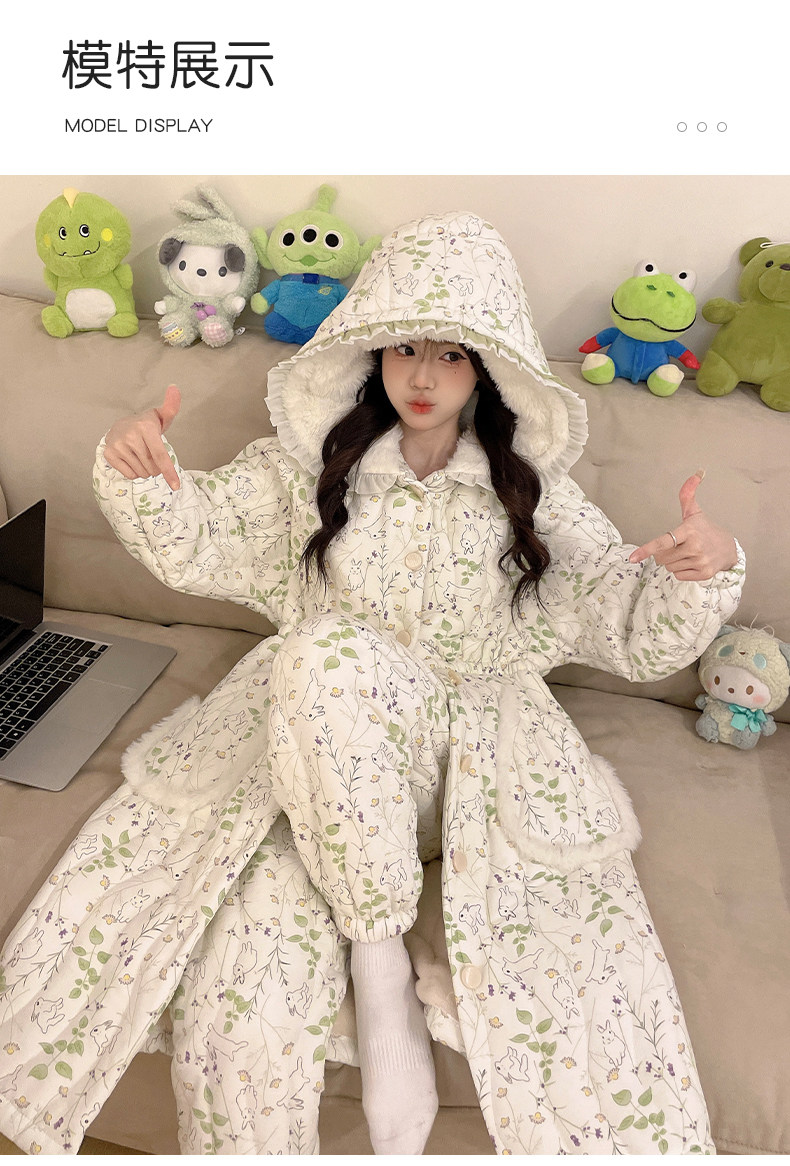 Color Classification 【Triple-Layer Quilted Warmth】Hooded Green Leaf Bunny Skort Set,【Triple-Layer Quilted Warmth】Princess Collar Pink Floral - Skirt Pants Set,Winter, Autumn/Winter Collection, 2025 New Arrivals, Japanese Style, Cute, Cartoon, Casual, Premium Feel, Hooded, Loungewear, Two-Piece Set, Outfit Set,Fleece-Lined, Thickened, Thick Cotton Coat, Cotton-Padded Jacket, Long Sleeves, Long Pants, Robe, Long, Women, Women, Girls, Women, Girls,Plus Size Warm Loose Nightgown Robe Bathrobe - Girly, Beautiful, Exquisite, and Gorgeous - Perfect for Lounging or Wearing Outdoors.