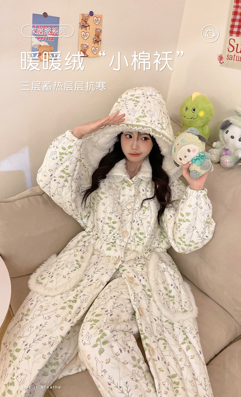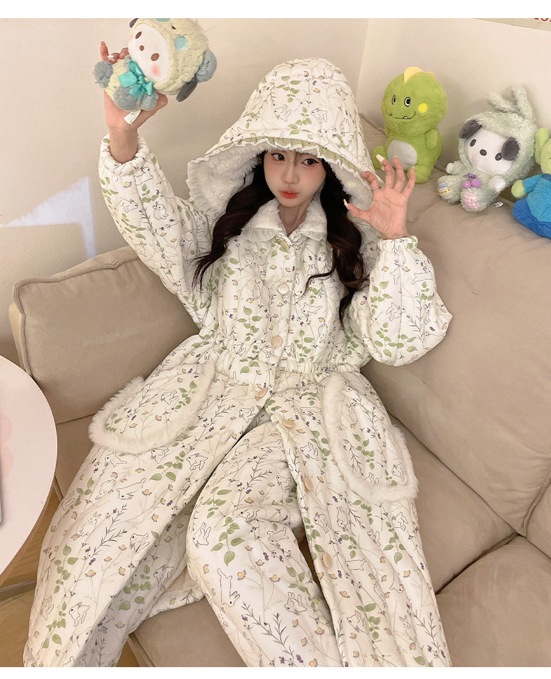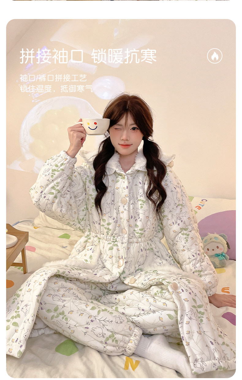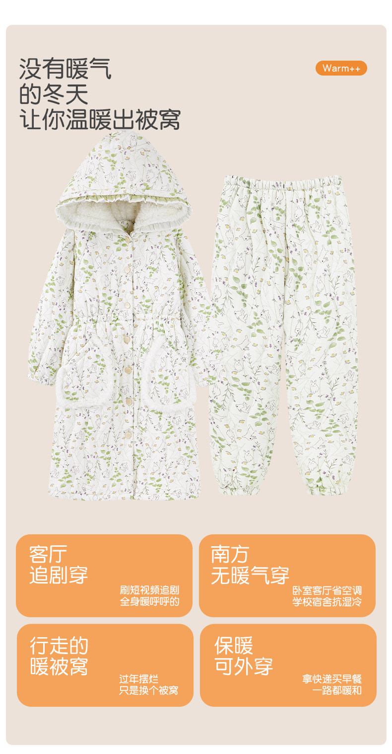 Color Classification 【Triple-Layer Quilted Warmth】Hooded Green Leaf Bunny Skort Set,【Triple-Layer Quilted Warmth】Princess Collar Pink Floral - Skirt Pants Set,Winter, Autumn/Winter Collection, 2025 New Arrivals, Japanese Style, Cute, Cartoon, Casual, Premium Feel, Hooded, Loungewear, Two-Piece Set, Outfit Set,Fleece-Lined, Thickened, Thick Cotton Coat, Cotton-Padded Jacket, Long Sleeves, Long Pants, Robe, Long, Women, Women, Girls, Women, Girls,Plus Size Warm Loose Nightgown Robe Bathrobe - Girly, Beautiful, Exquisite, and Gorgeous - Perfect for Lounging or Wearing Outdoors.