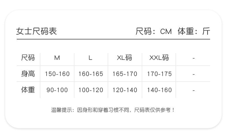 China (cm) 160-165/84-86 165-170 / 88-90 167-172 / 92-96 168-173 / 98-102 170-176 / 106-110