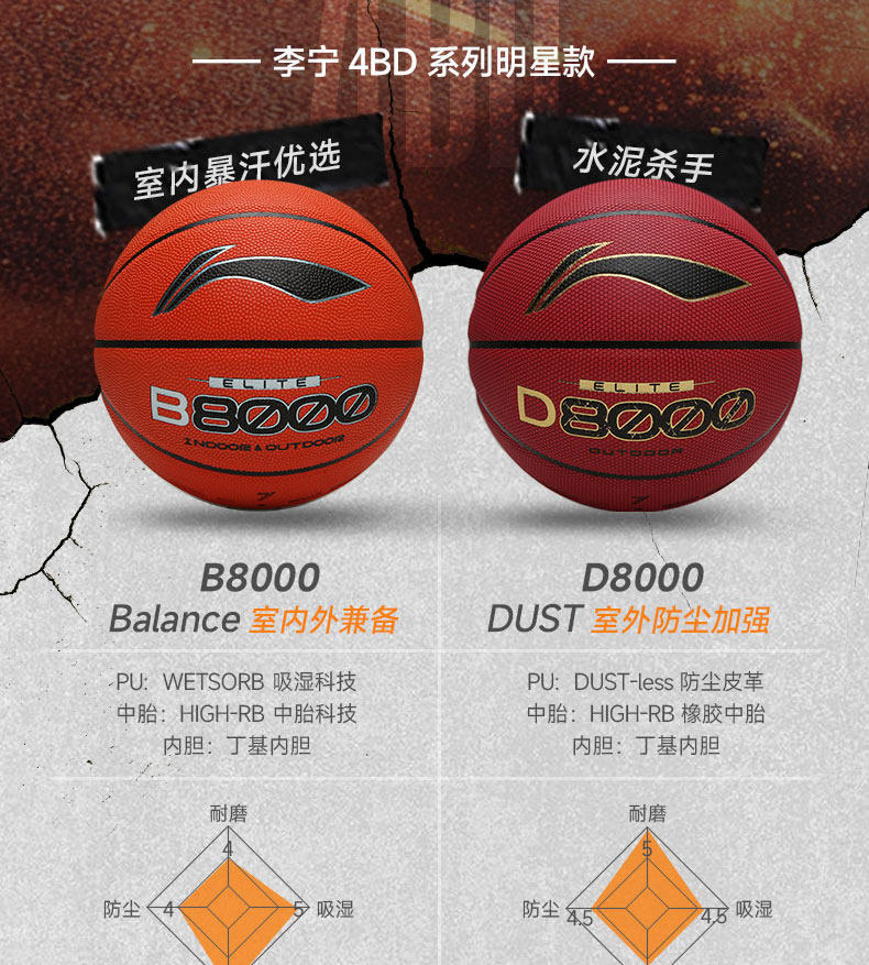 李宁4BD篮球D8000正品957升级成人7号手感之王男生专用礼物B8500
