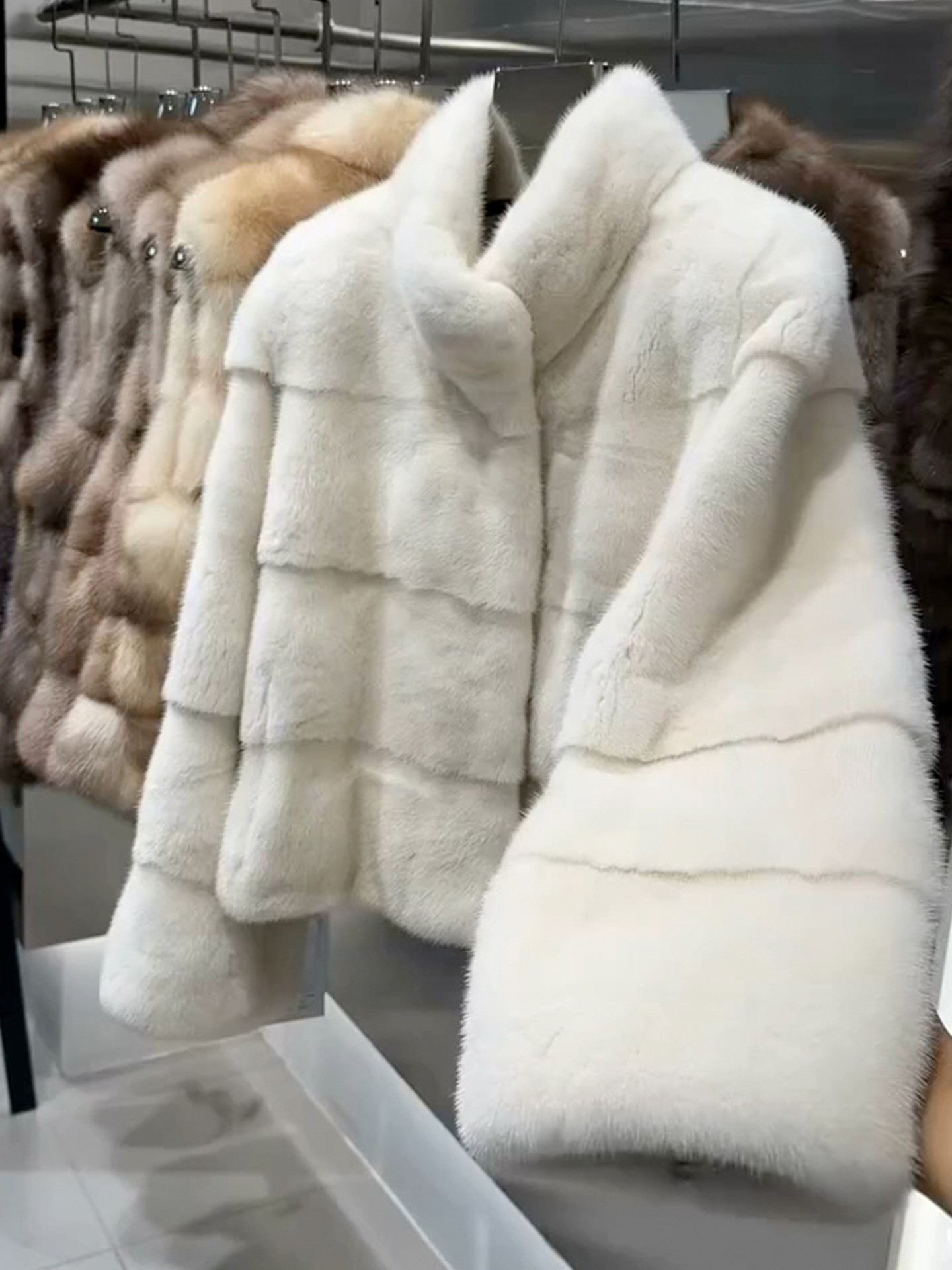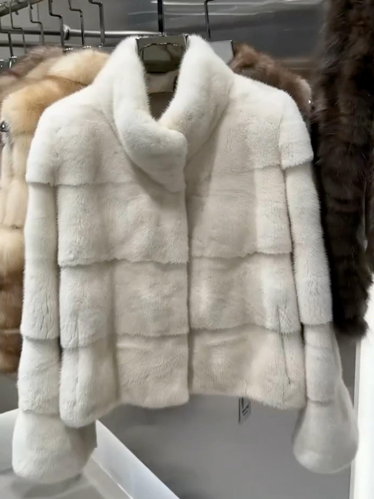 高级立领白色层次设计感毛毛外套女装冬季新款富家千金风保暖上衣