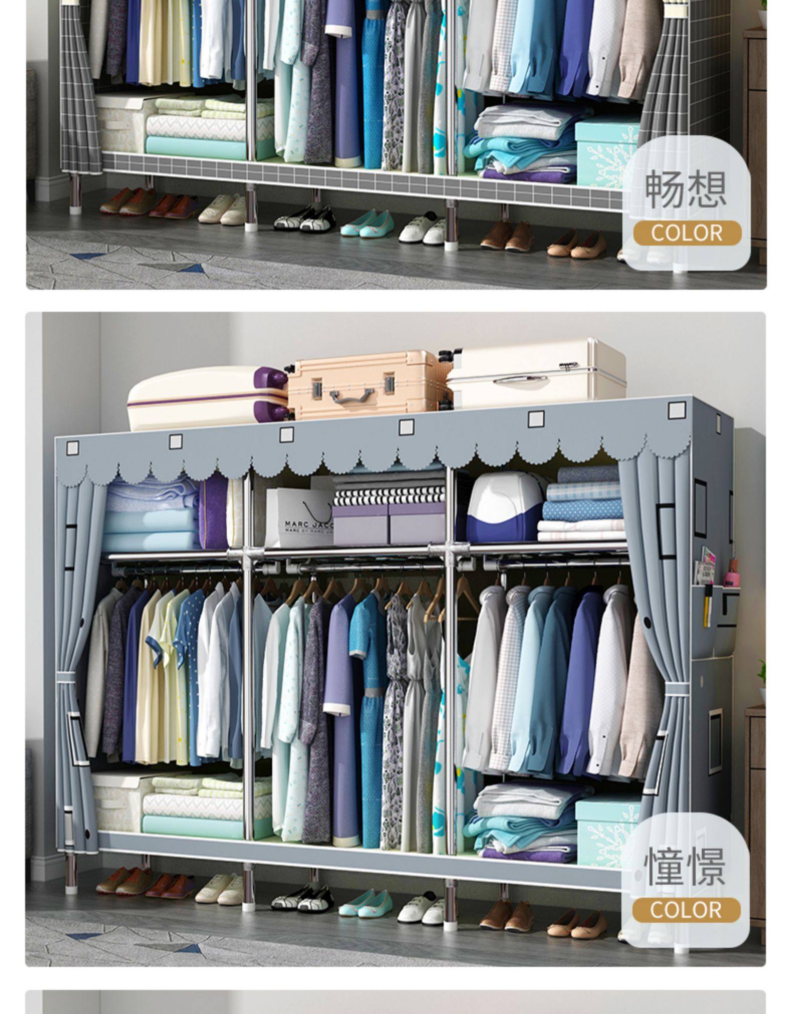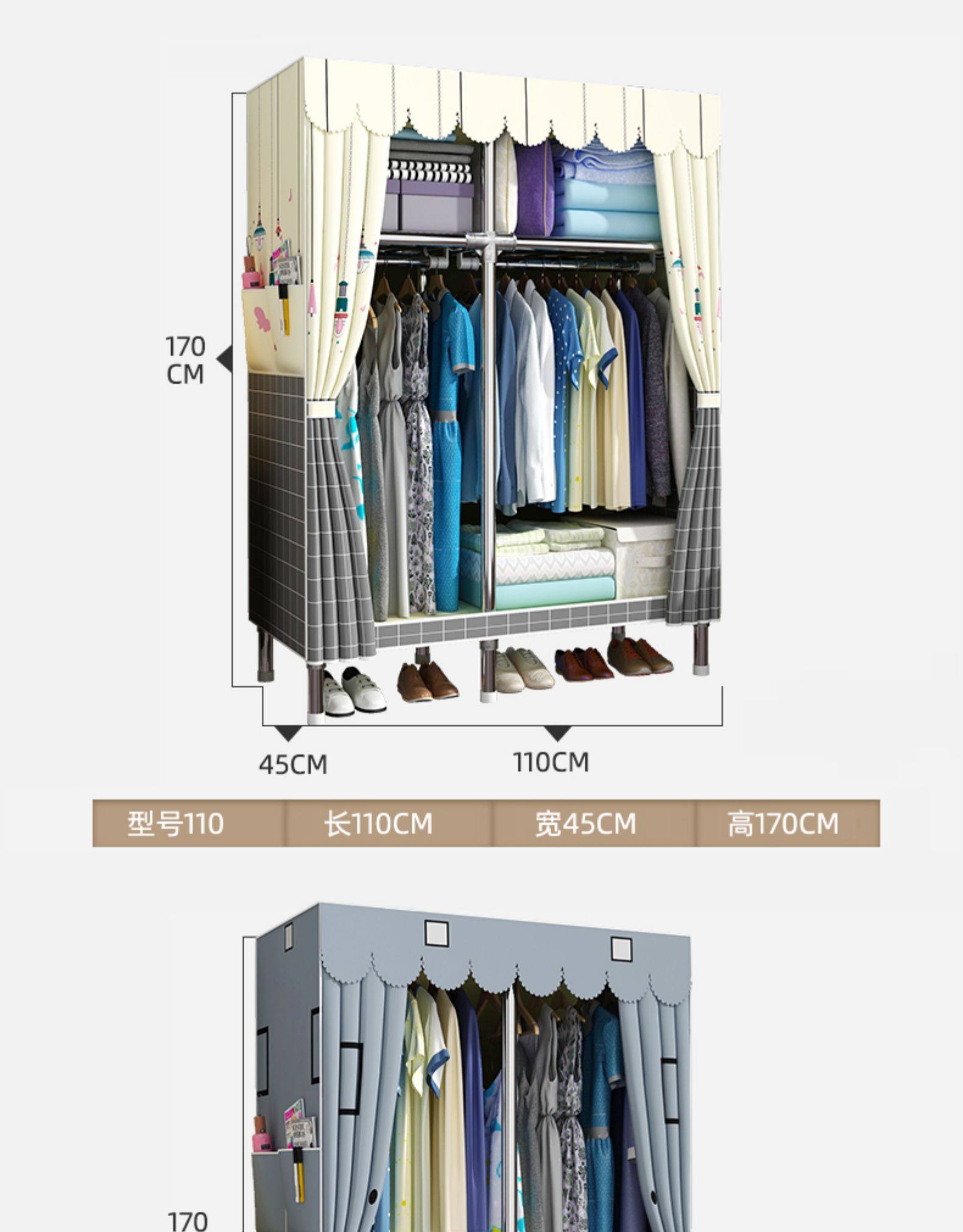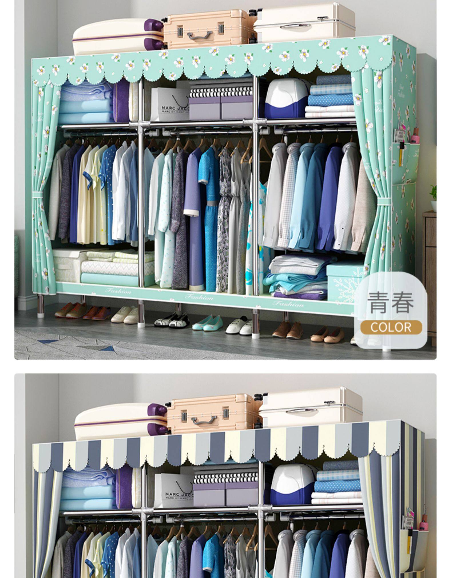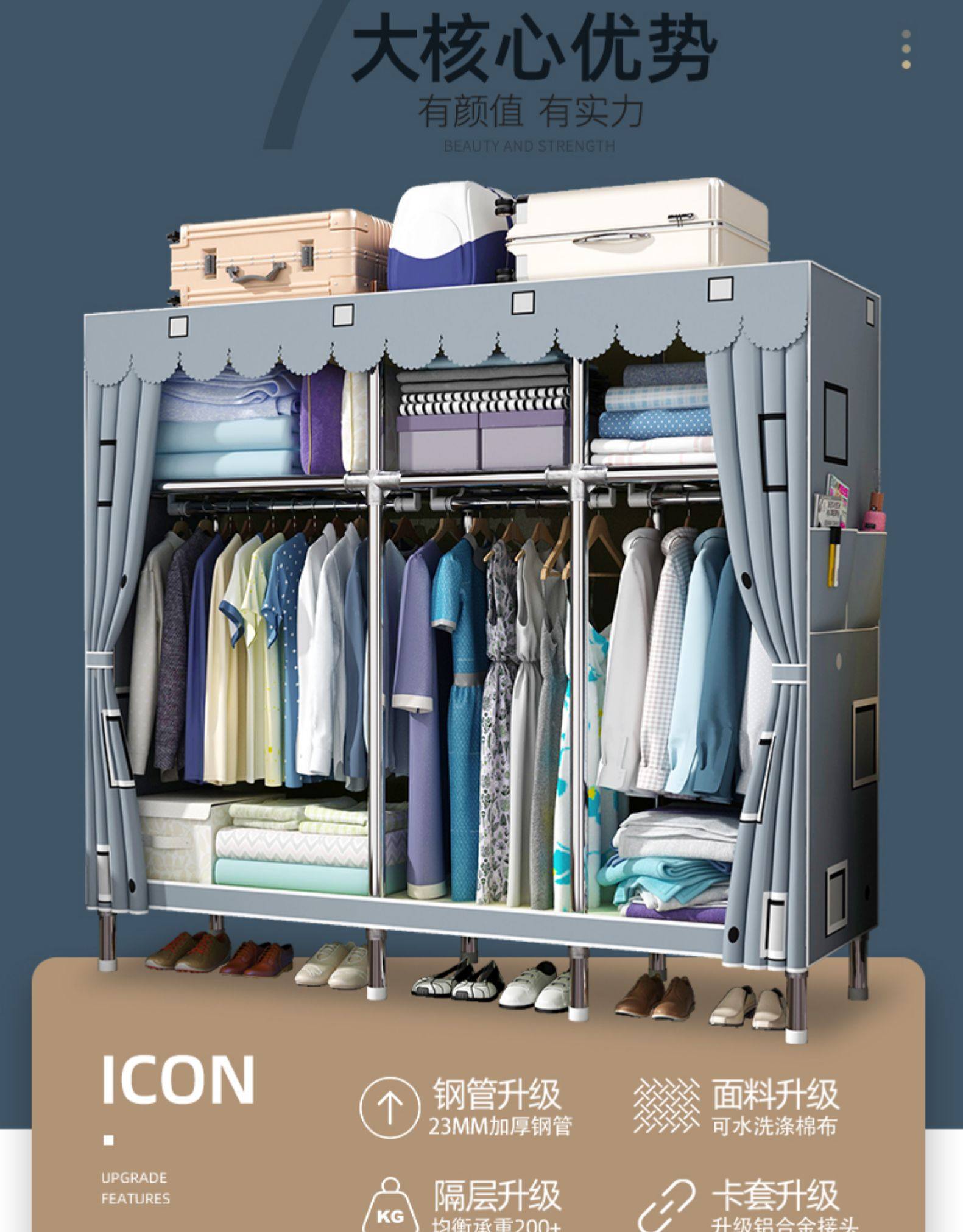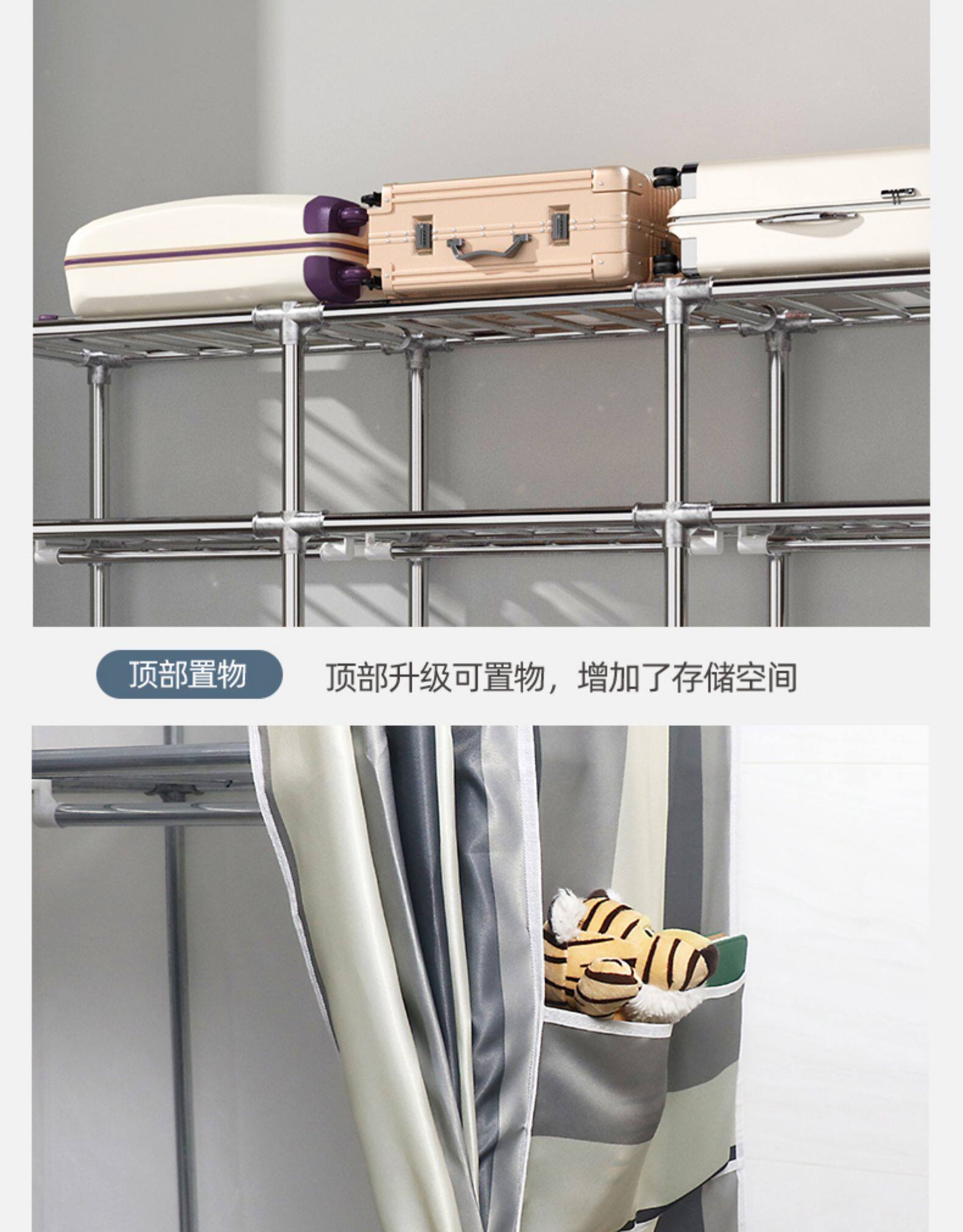 Einfacher Stoffschrank aus dickem Stahlrohr zur Hausvermietung