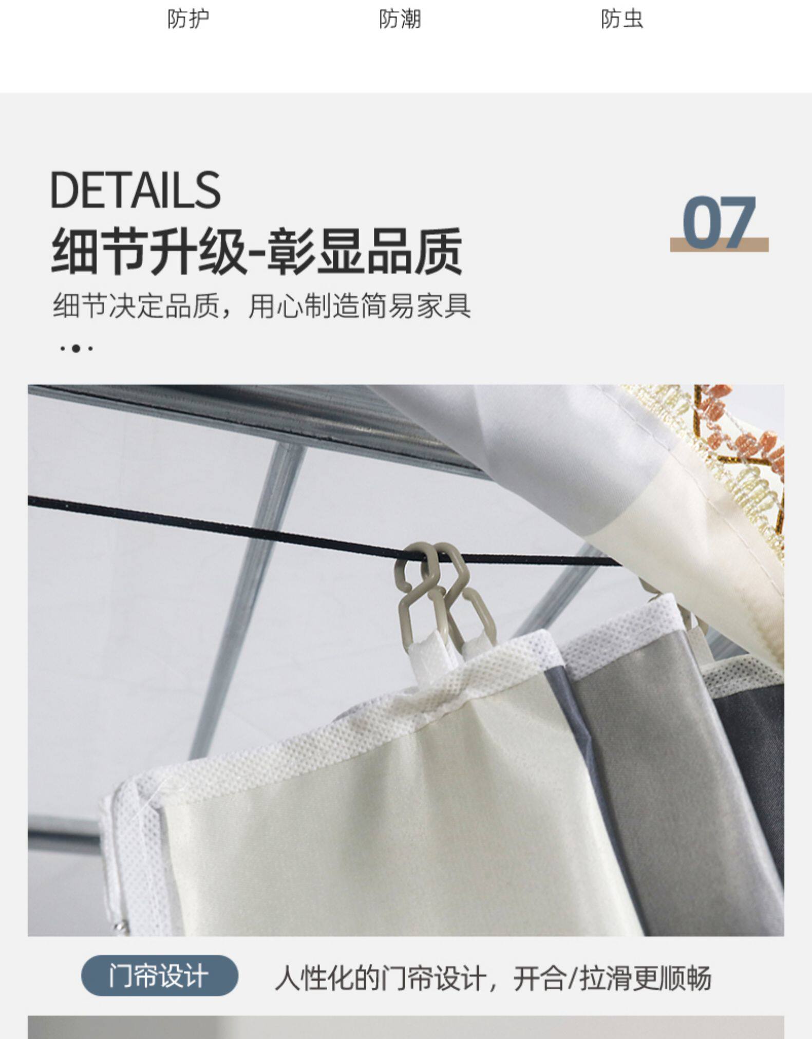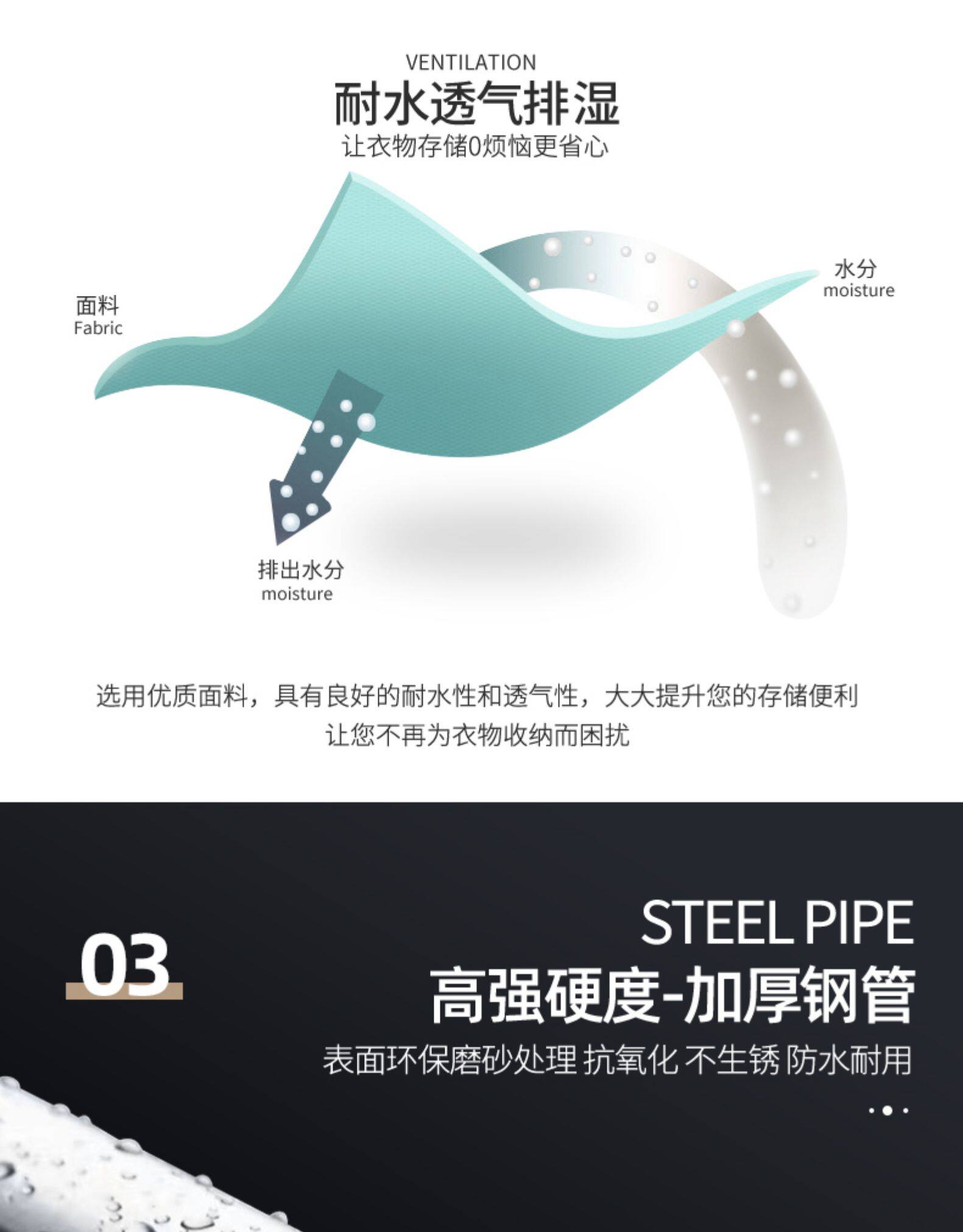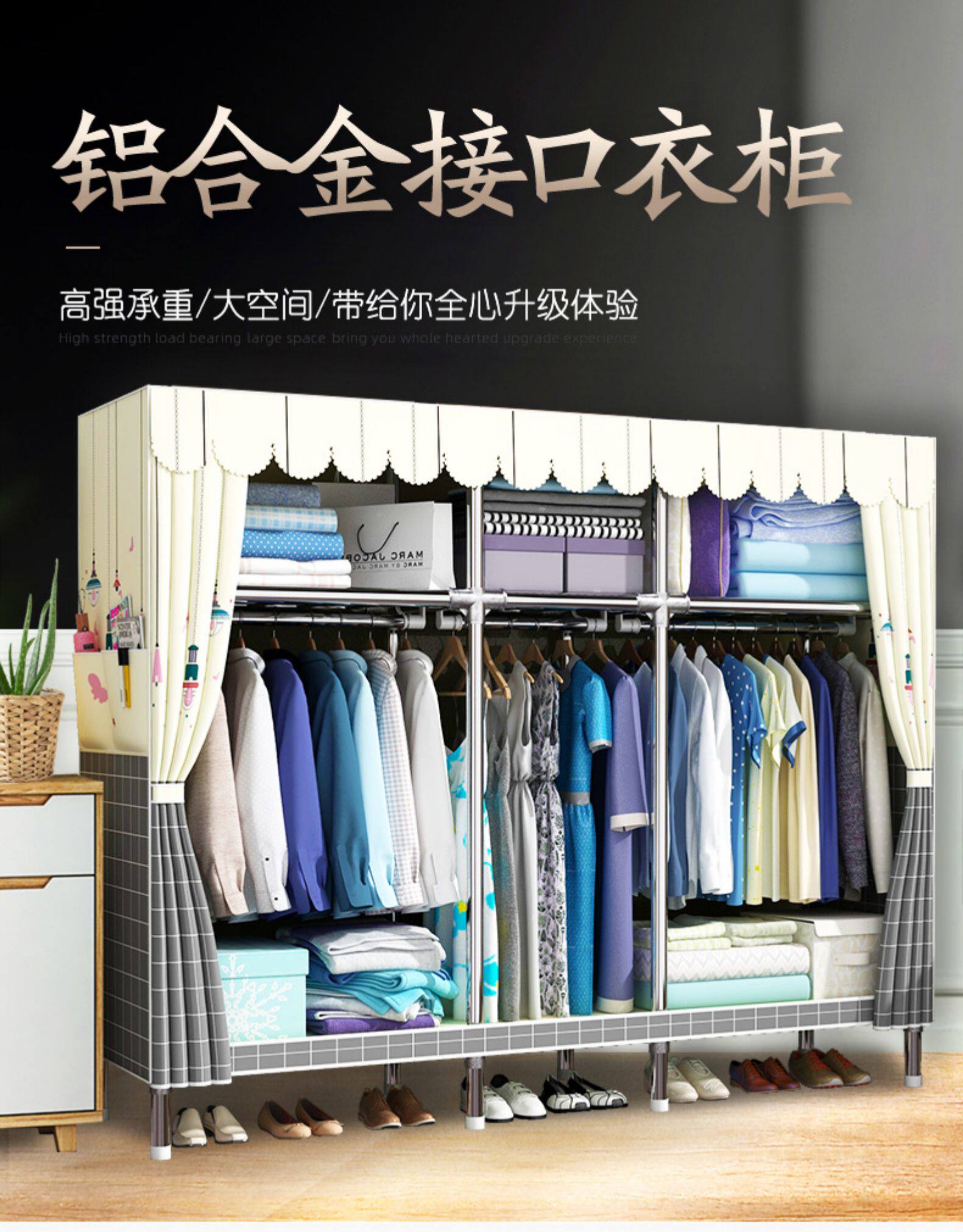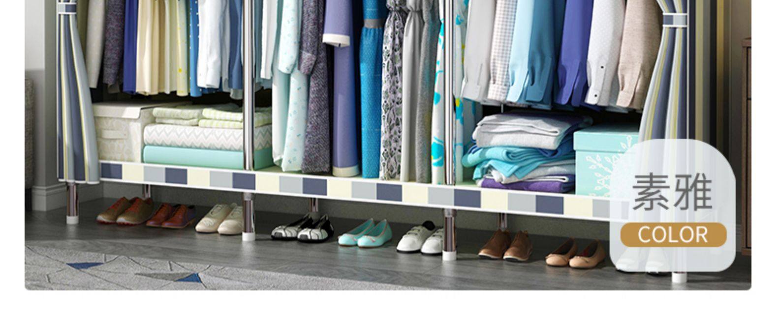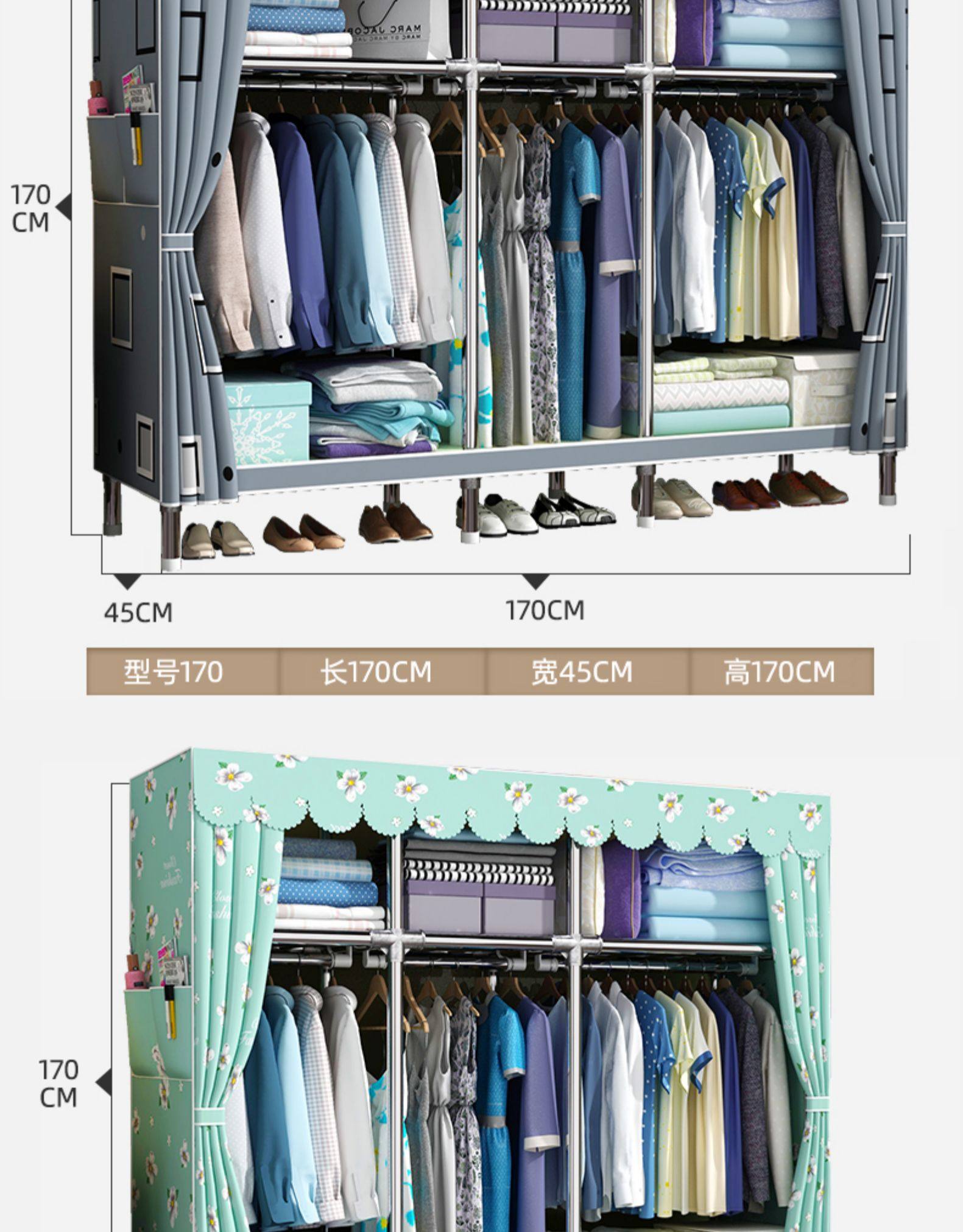 Einfacher Stoffschrank aus dickem Stahlrohr zur Hausvermietung