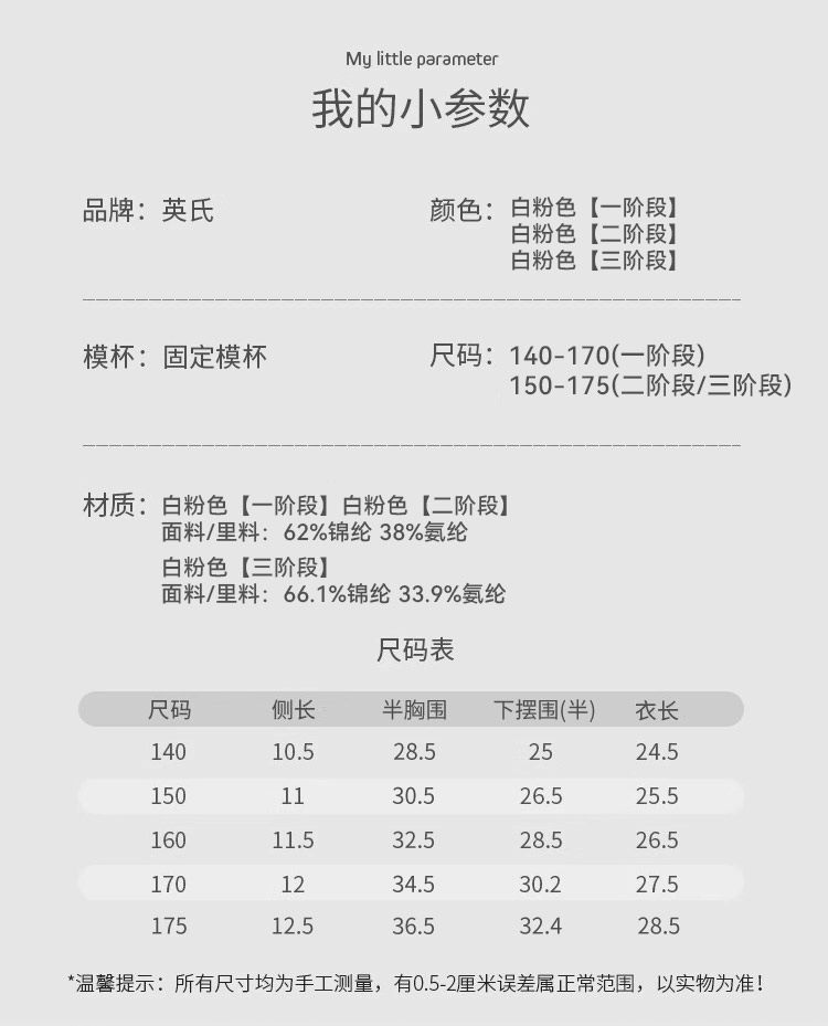 英氏儿童内衣发育期小学生女童无痕背心一二三阶段夏薄款少女文胸
