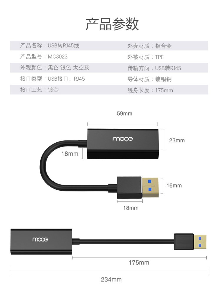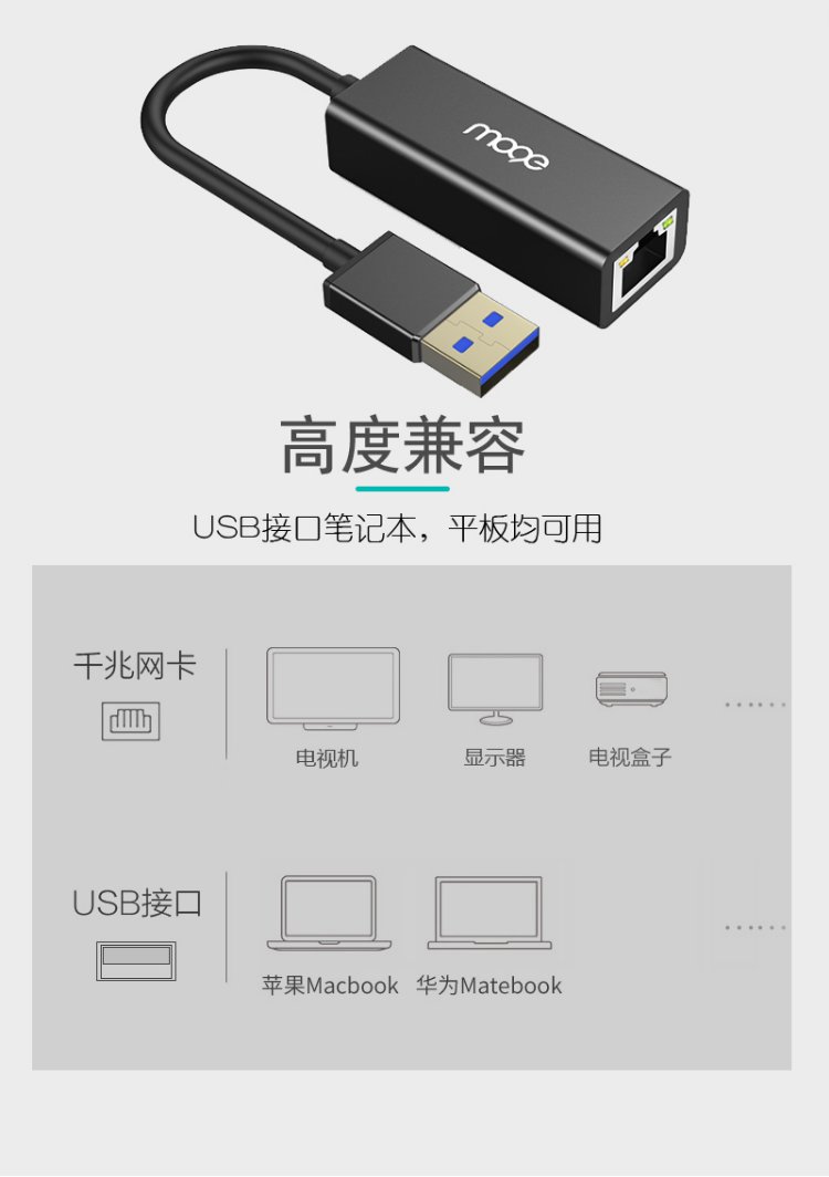 MOGE USB3.0-Gigabit-Kabel-Netzwerkkarte zu RJ45-Netzwerkkabel-Schnittstellenkonverter, geeignet für Apple Notebook TV Box zum Anschluss an den externen Netzwerk-Port-Adapter MC3023