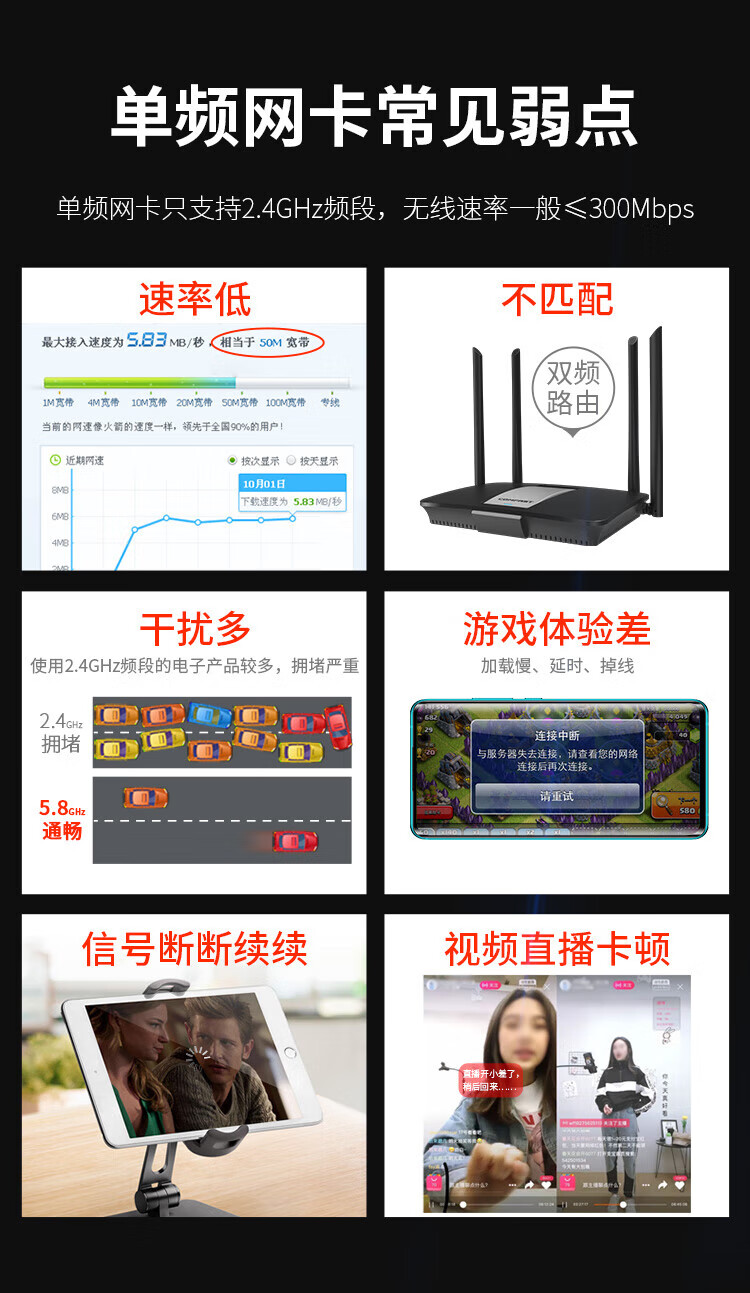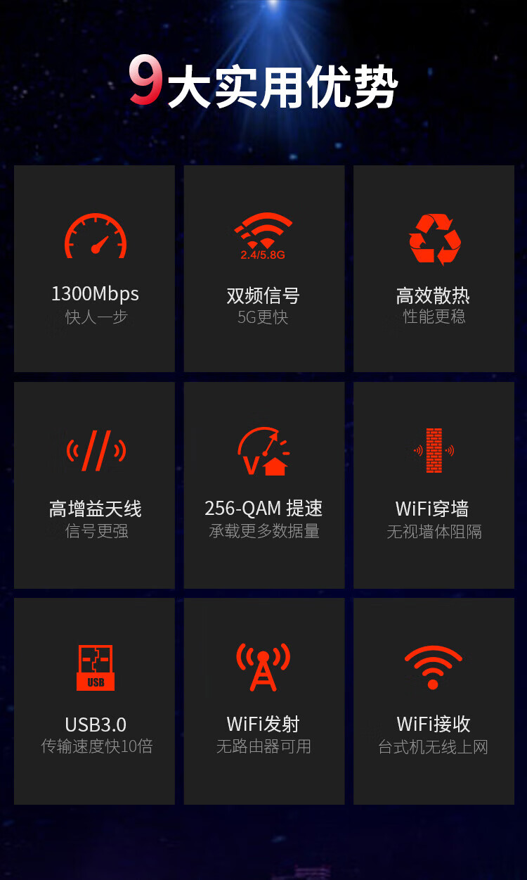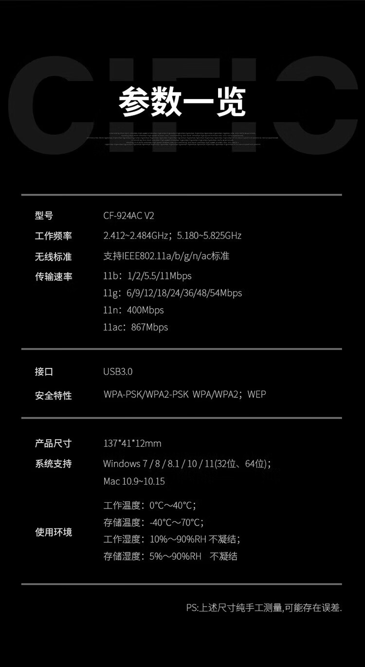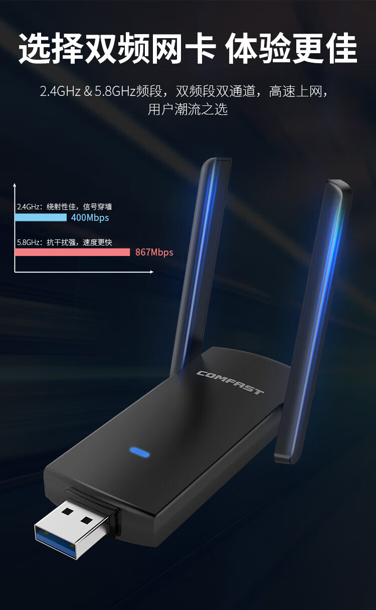 COMFAST CF-924AC tarjeta de red inalámbrica Gigabit USB de doble banda 1300M transmisor receptor WIFI para ordenador portátil dedicado de escritorio