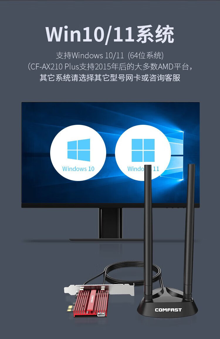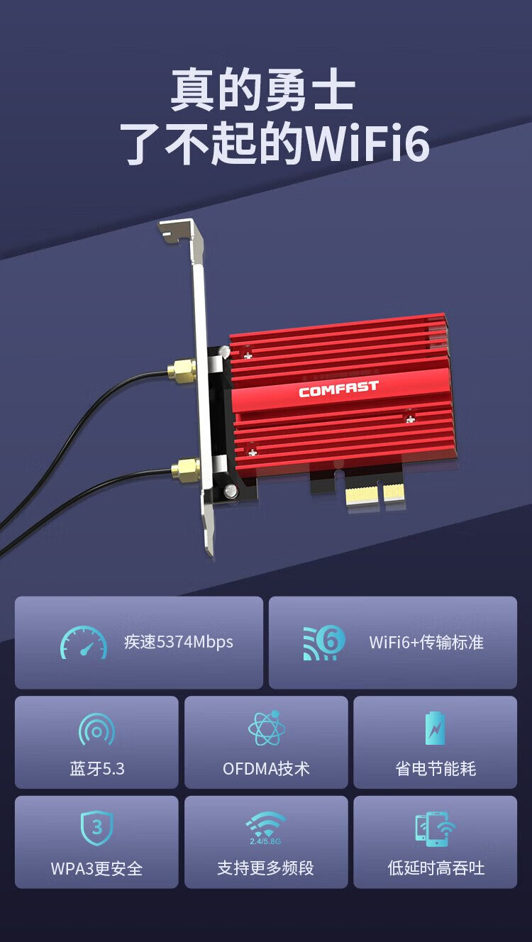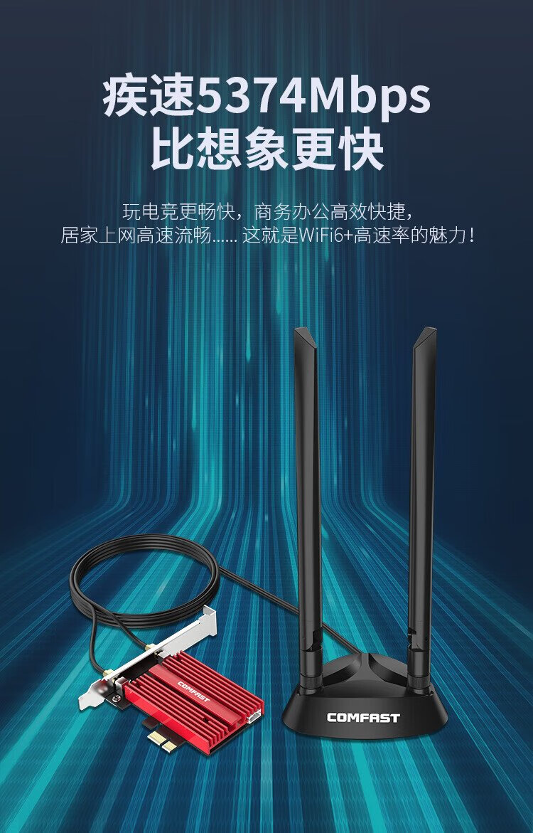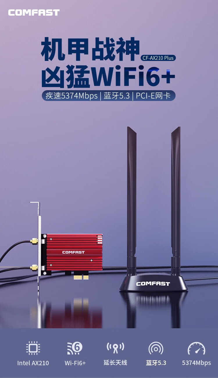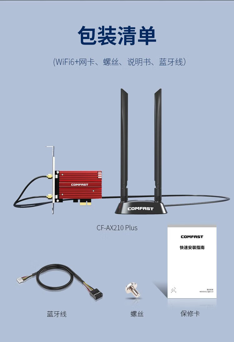 COMFAST AX210PLUS无线网卡WiFi6双频千兆PCI-E内置无线网卡5374M+蓝牙5.3二合一无线网络wifi接收器