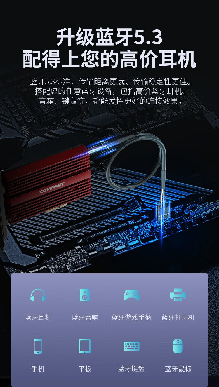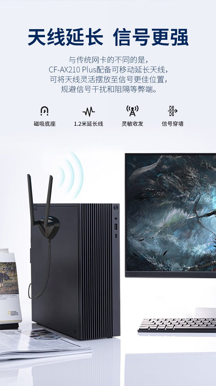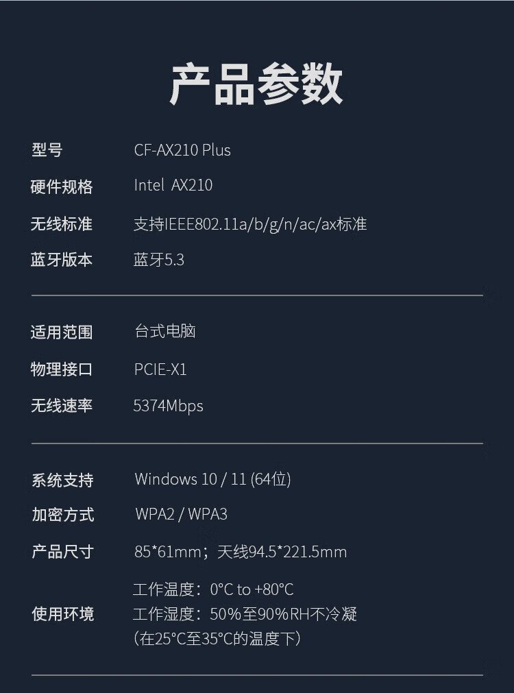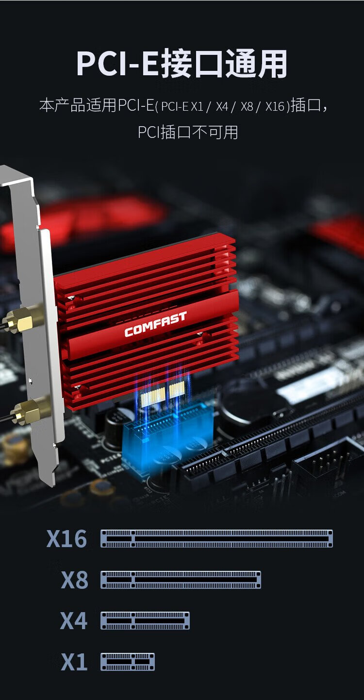 COMFAST AX210PLUS无线网卡WiFi6双频千兆PCI-E内置无线网卡5374M+蓝牙5.3二合一无线网络wifi接收器