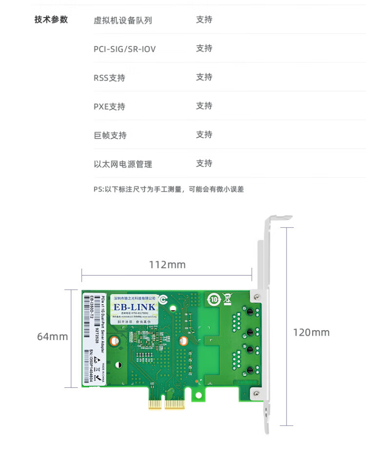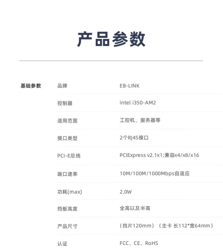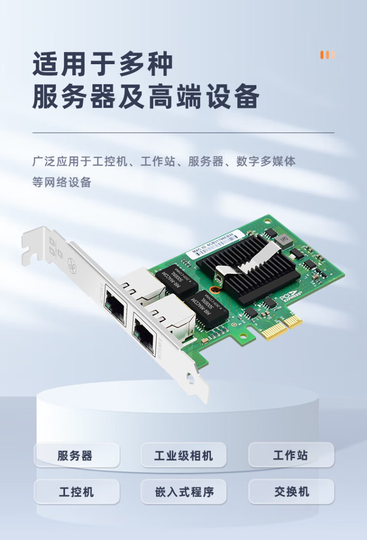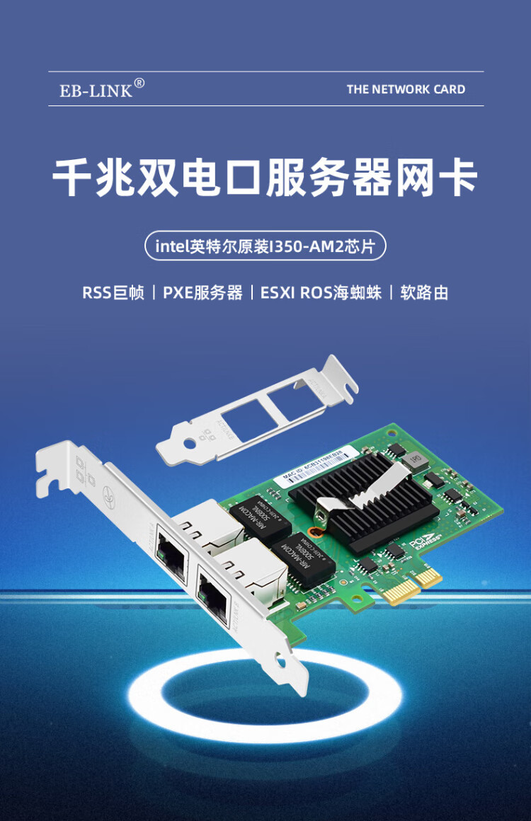 EB-LINK intel I350AM2芯片PCI-E X1千兆双口服务器网卡I350-T2(短板)机器视觉工业相机