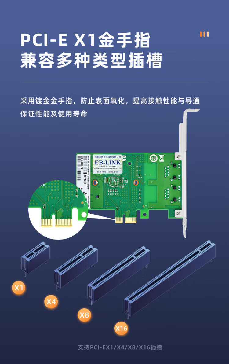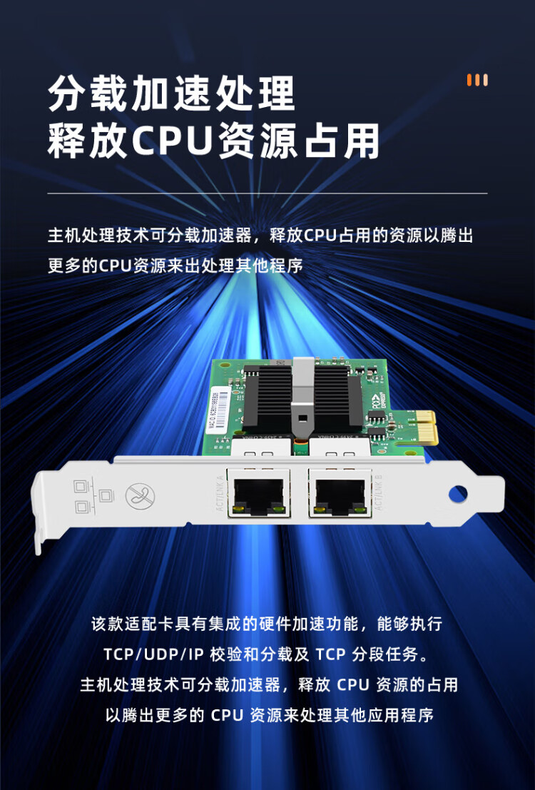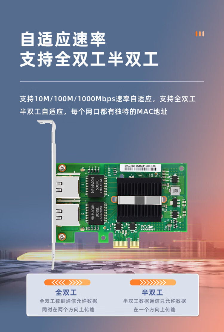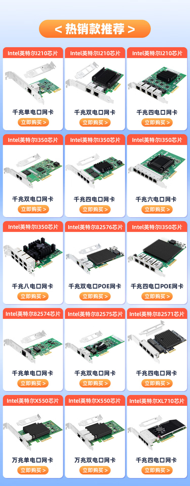EB-LINK intel I350AM2芯片PCI-E X1千兆双口服务器网卡I350-T2(短板)机器视觉工业相机