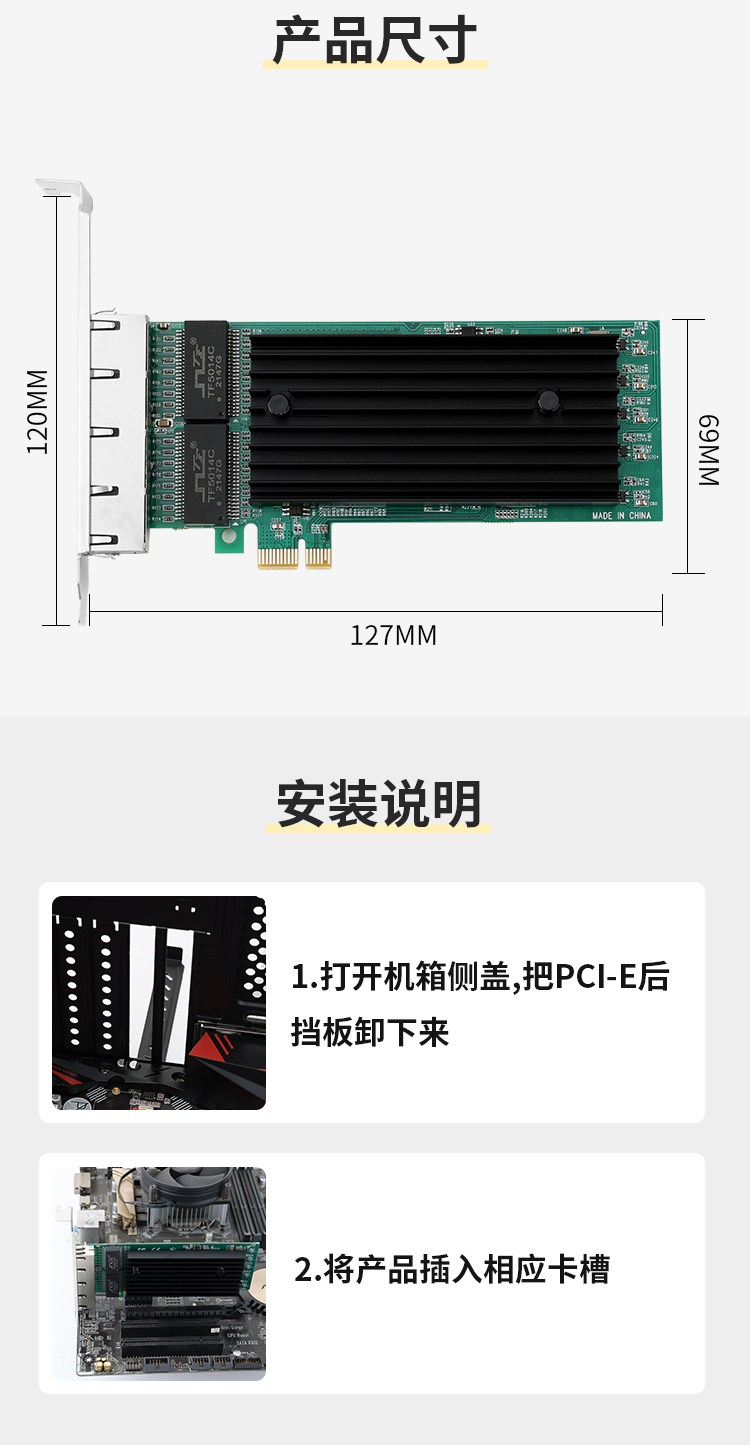 Capricornio MOGE tarjeta de red incorporada de escritorio PCIE Gigabit tarjeta de puerto de red servidor tarjeta de puerto de red Intel intel82576 chip cuatro puertos eléctricos tarjeta de red MC2259