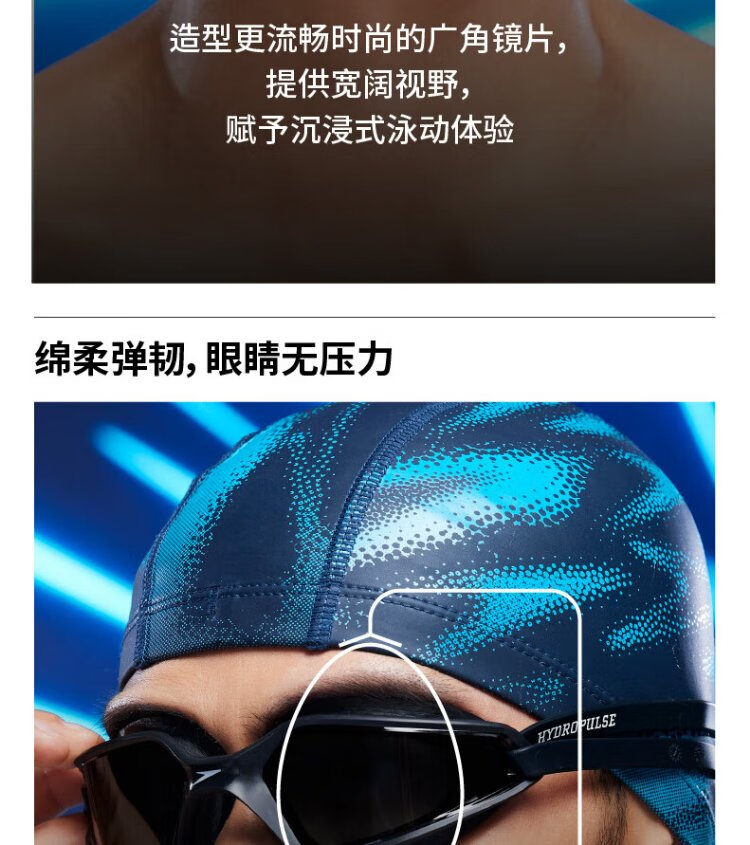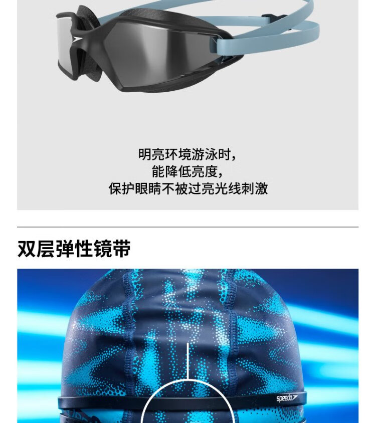 Speedo HYDROPULSEH large field of view high-definition anti-fog swimming goggles swimming equipment black/grey