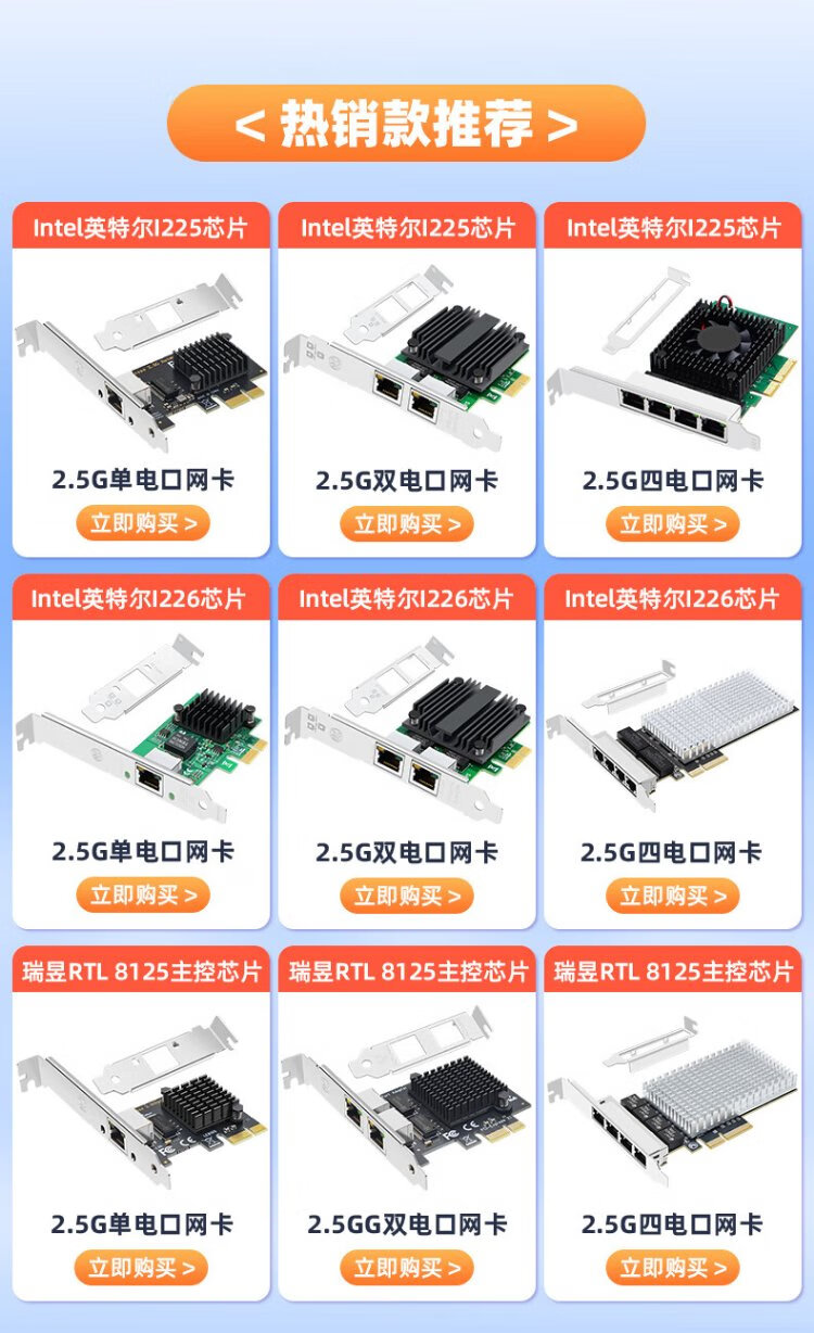 EB-LINK Intel I226 Chip PCI-E X4 2,5 G Vier-Port-Server-Netzwerkkarte 2500 M Gigabit 4 elektrische Port-Netzwerk Industriekamera Bilderfassung Maschine Vision