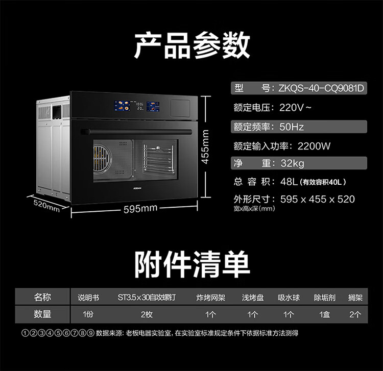 Robam Water Vapor Separation CQ9081D Skimming Color Screen Steaming Oven All-in-One Embedded Steaming, Baking, Frying and Stewing Enamel Liner Multifunctional Oven National Subsidy Government Subsidy