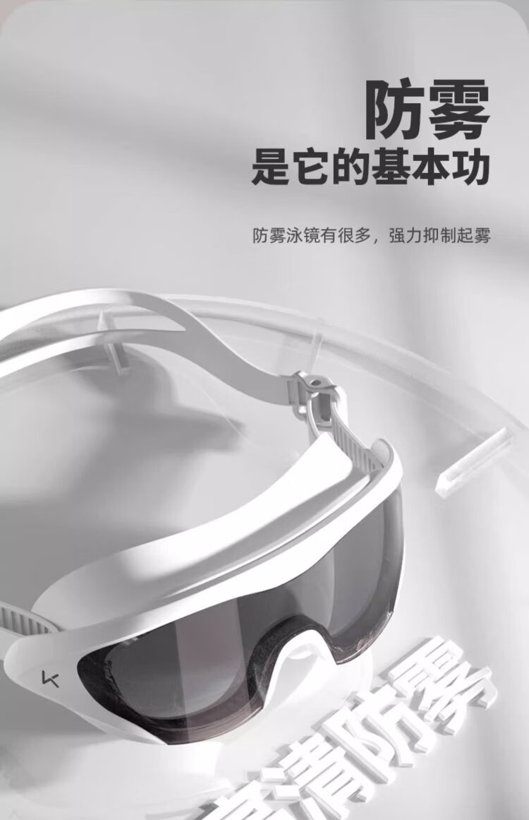Keep swimming goggles HD waterproof anti-fog large frame swimming goggles for men and women professional diving equipment streamer white