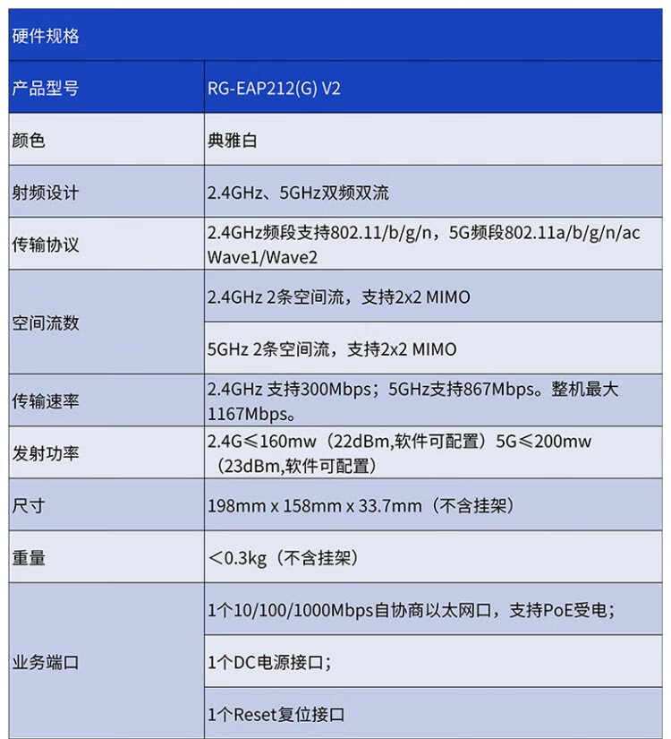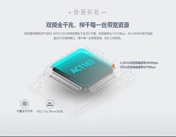 Ruijie plafond sans fil ap RG-EAP212 (G) V2 Gigabit double bande 1167 M routeur wifi pour toute la maison au niveau de l'entreprise grand bureau villa hôtel réseau