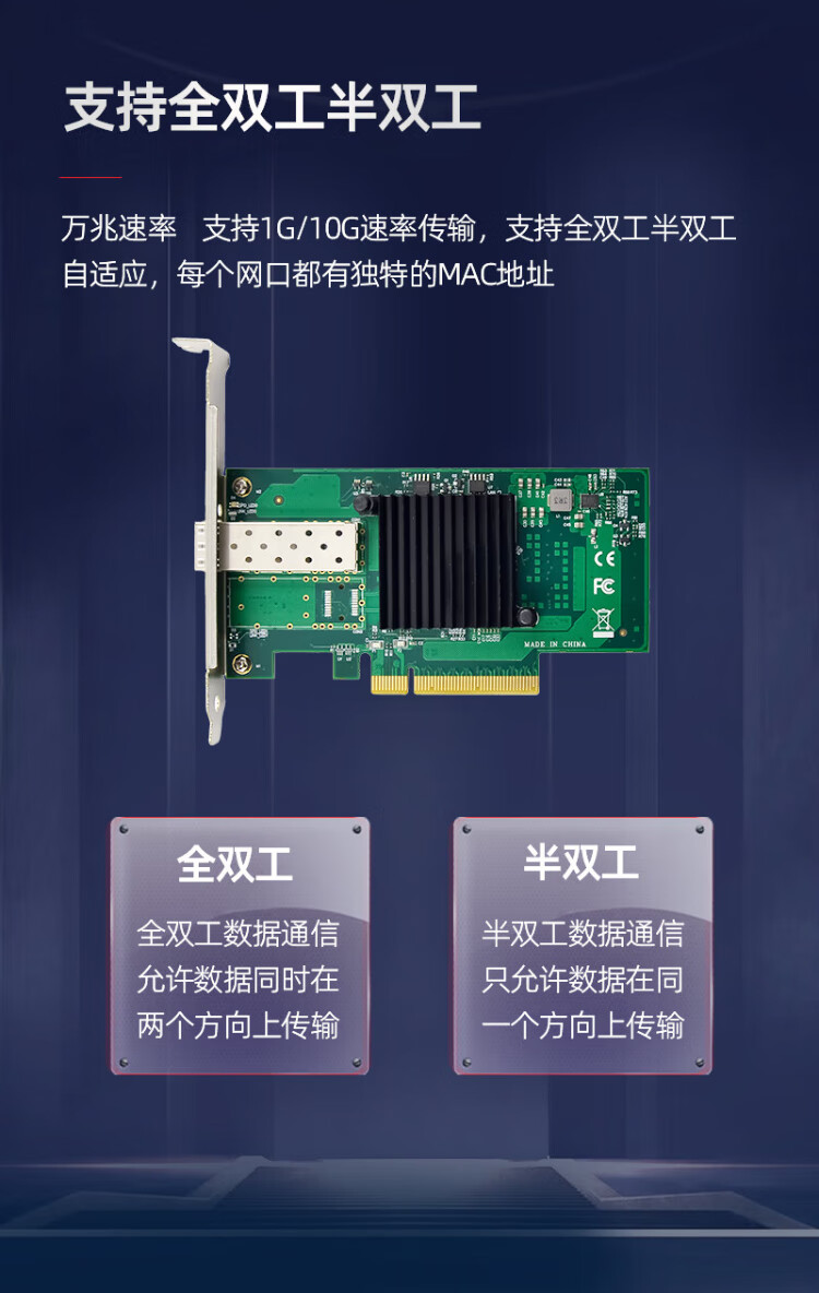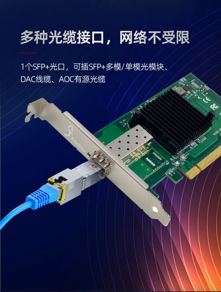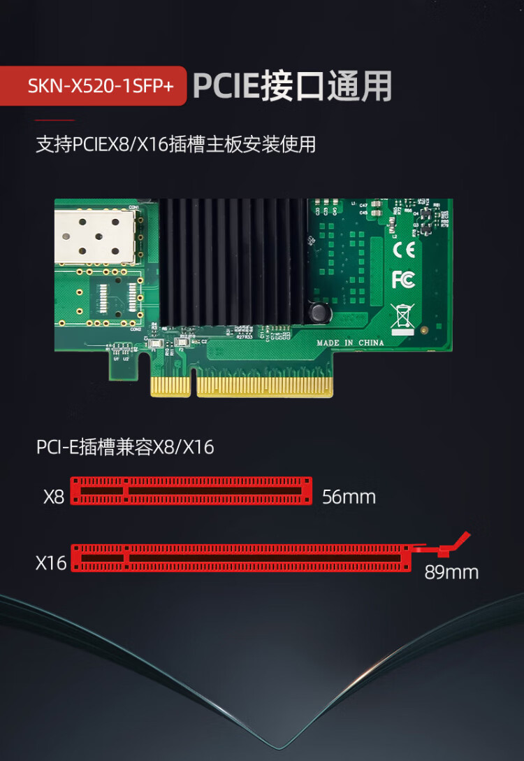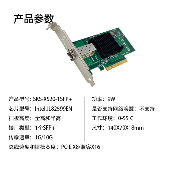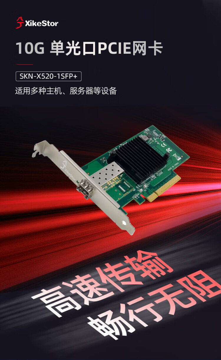 SKN-X520-1SFP+ Tarjeta de red de puerto óptico único 10G Chip Intel X520-DA1 Tarjeta de red de fibra óptica SPF+ de puerto único 10G Adaptador de servidor PCI-E x8