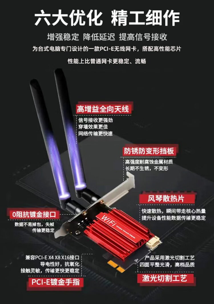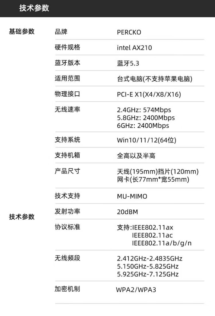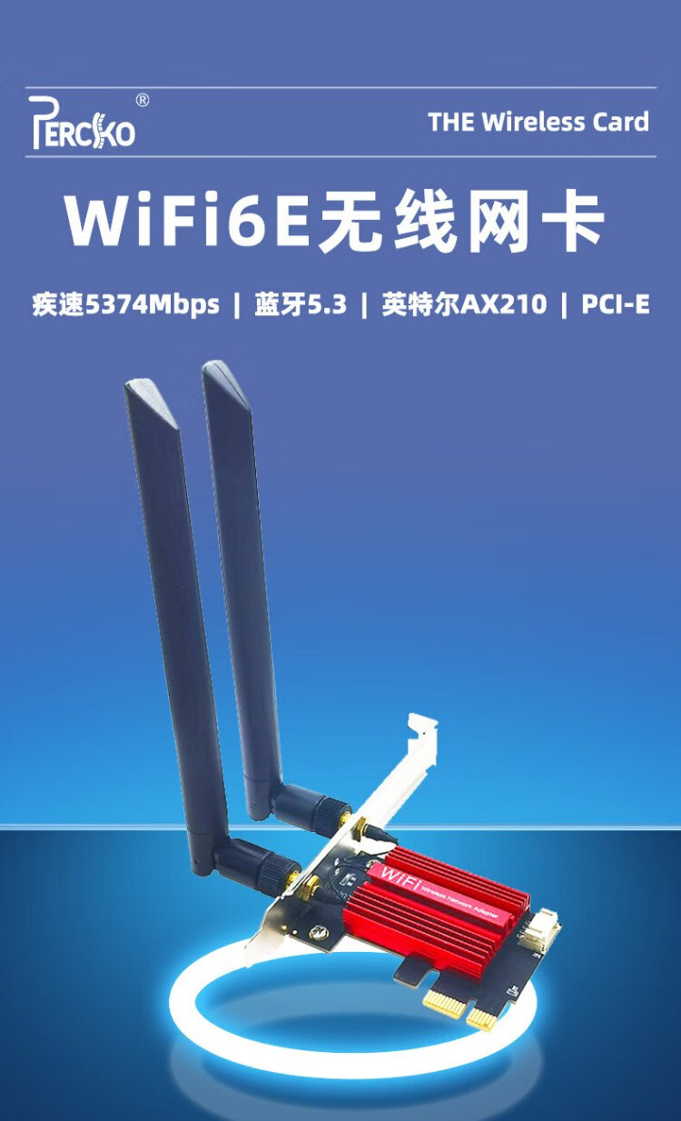 PERCKO Intel AX210 Pro Gigabit 5G wireless network card wifi6E Intel PCI-E network card desktop dedicated Bluetooth game linux computer wifi receiver