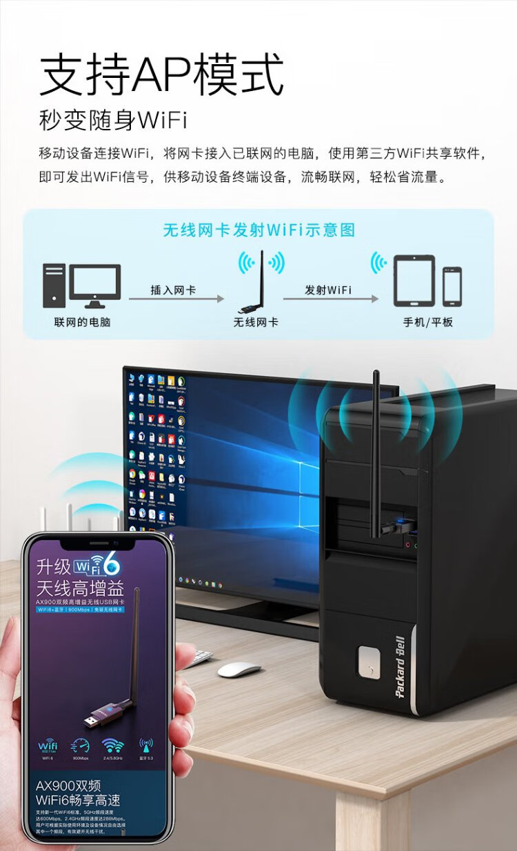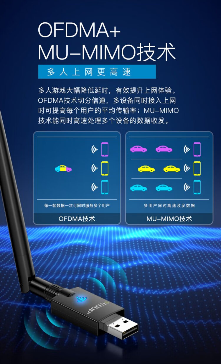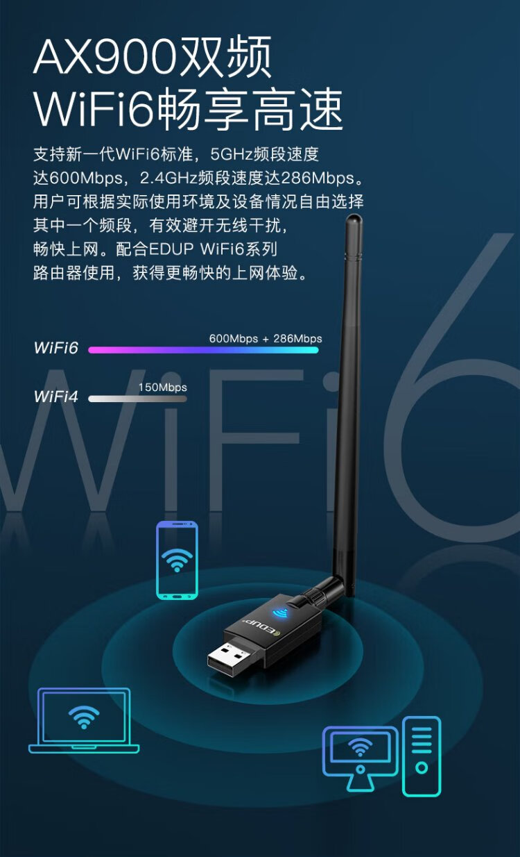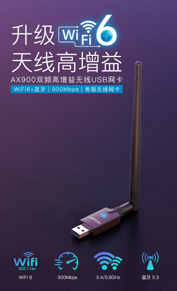 Yilian (EDUP) AX900 WiFi6 driver-free USB dual-band 5G Bluetooth 5.3 wireless network card desktop dedicated WiFi receiver supports Win10/11EP-AX900S