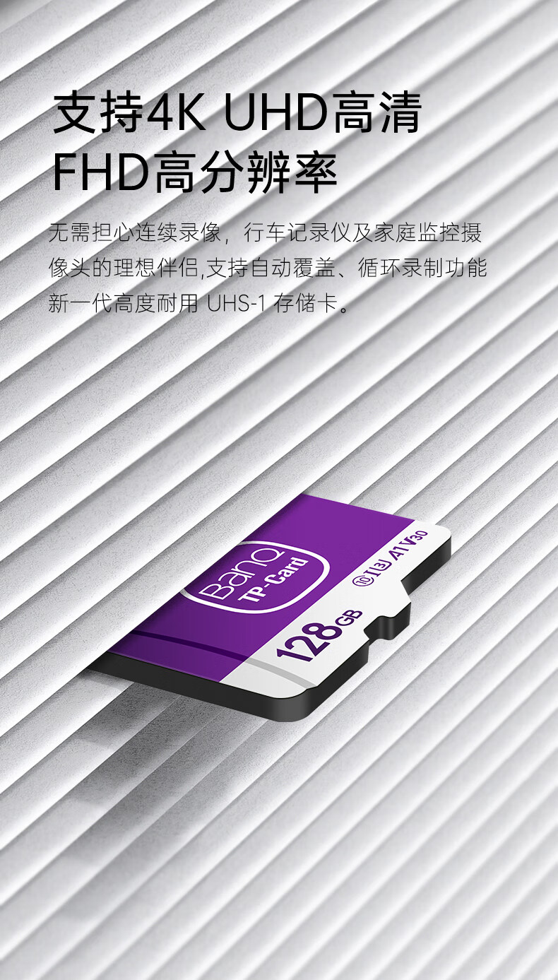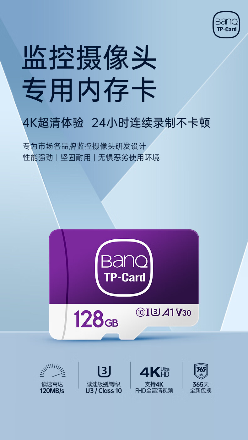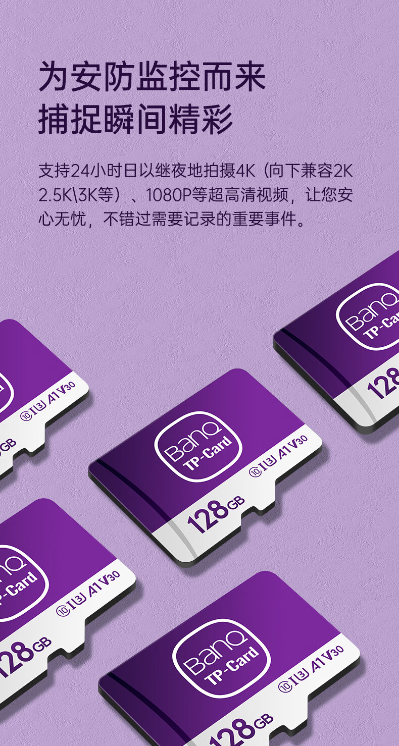 banq 128GB TF(MicroSD)存储卡 A1 U3 V30 4K 适用于TP-LINK普联监控摄像头&行车记录仪内存卡Pro版