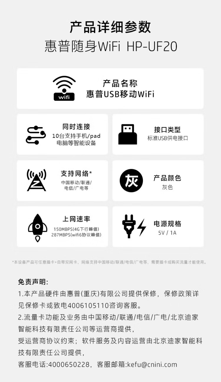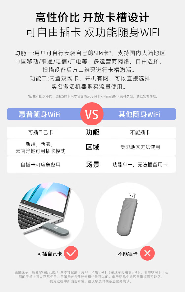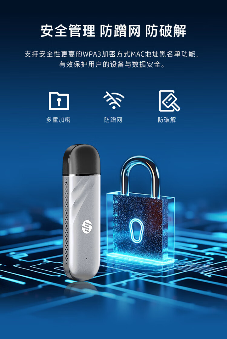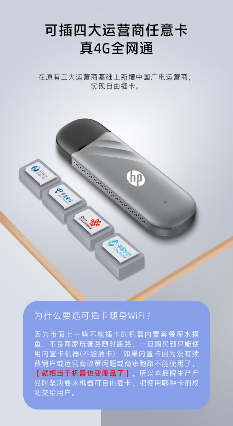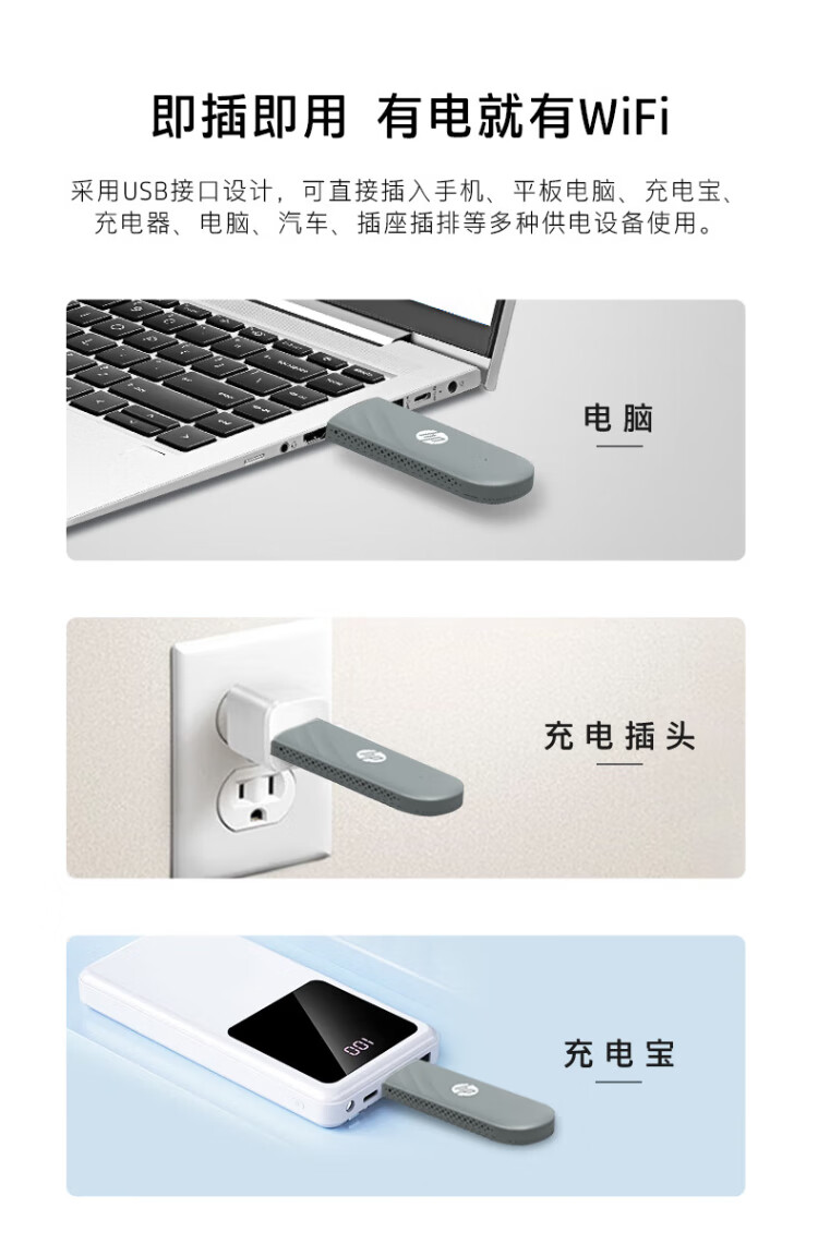 惠普(HP)可插自己卡随身Wifi6支持5G/4G设备移动双网全国通用高速无限流量2025款全网通便携无线路由器车载