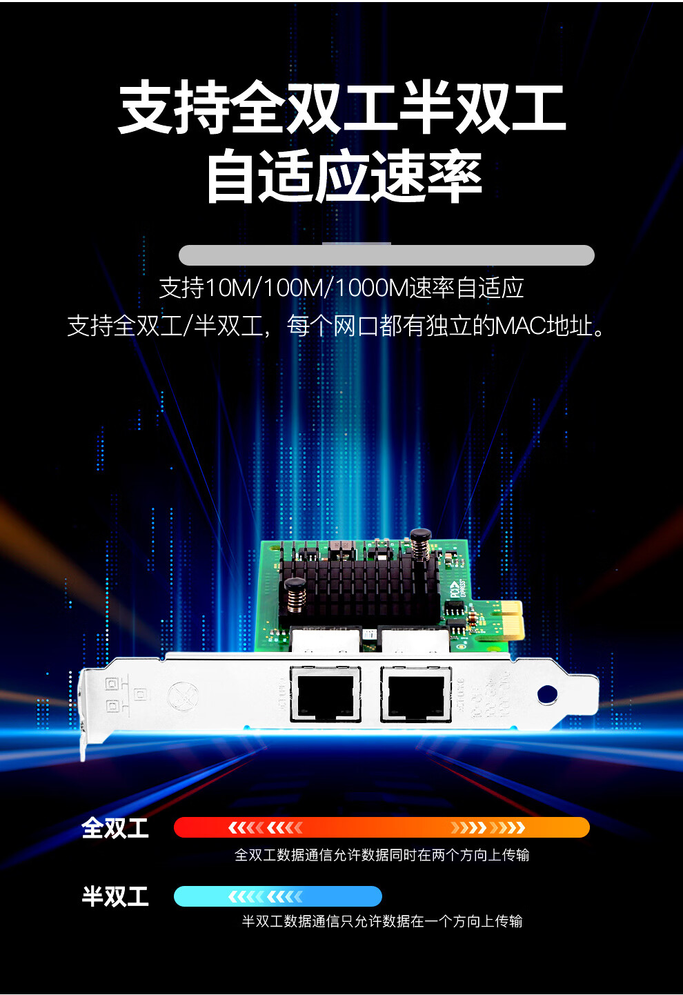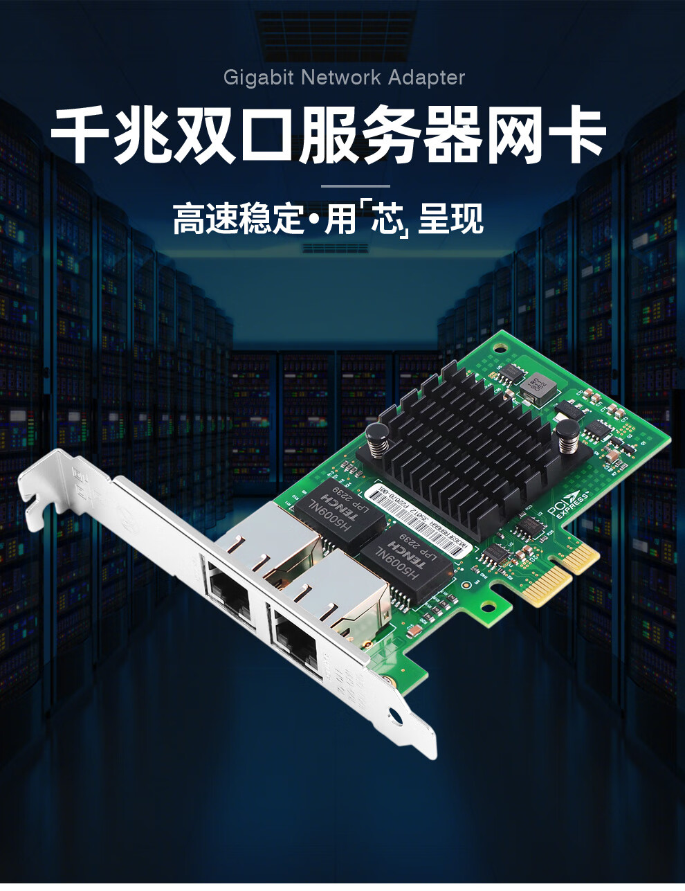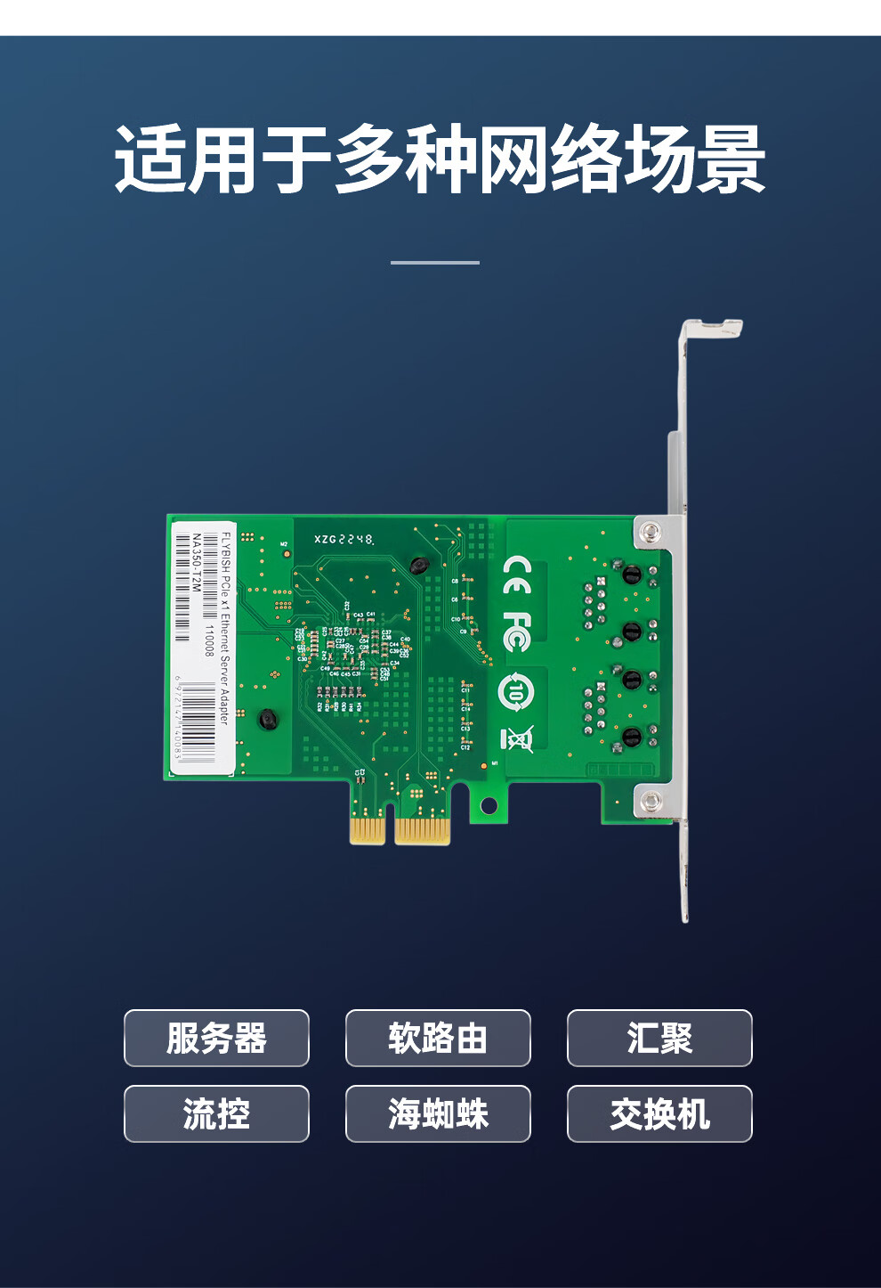 昆鱼(FLYBISH)NA350-T2M双口千兆PCI-E X1服务器网卡I350-T2(短板)机器视觉工业相机1000M网卡