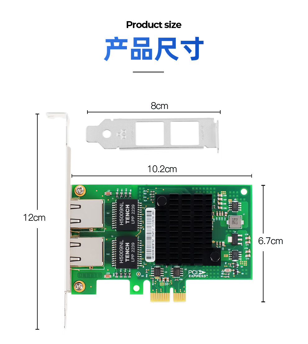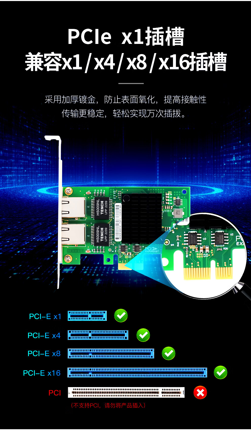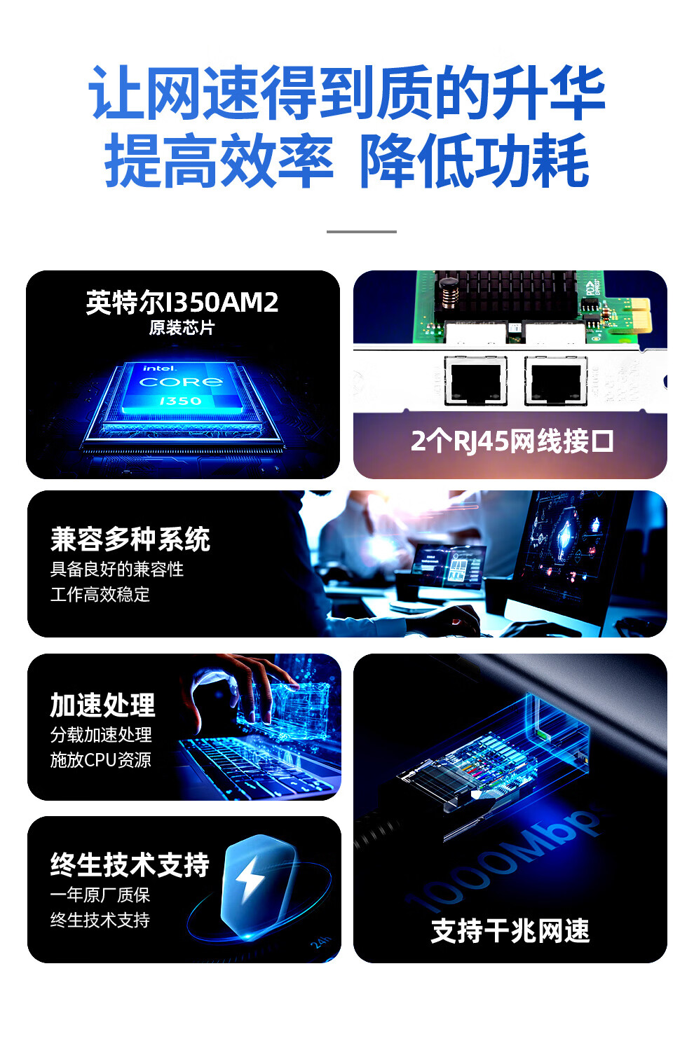 昆鱼(FLYBISH)NA350-T2M双口千兆PCI-E X1服务器网卡I350-T2(短板)机器视觉工业相机1000M网卡