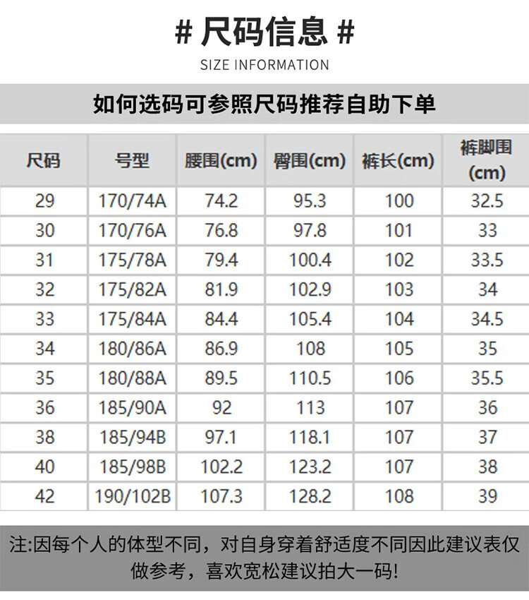USA(inch) 28-30 30-32 32-34 34-38 38-42