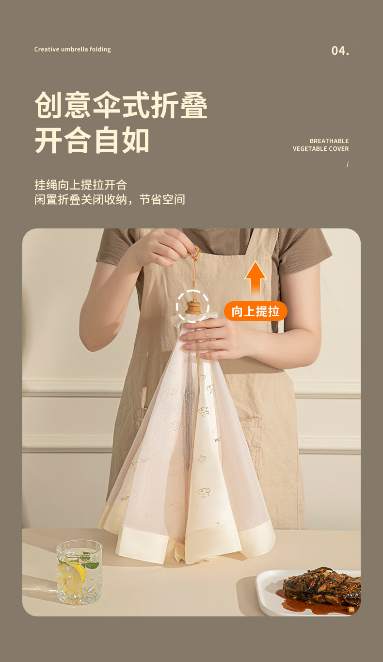 迪普尔饭菜罩防虫盖菜罩家用可折叠2024新款夏日防蚊透气餐桌食物罩