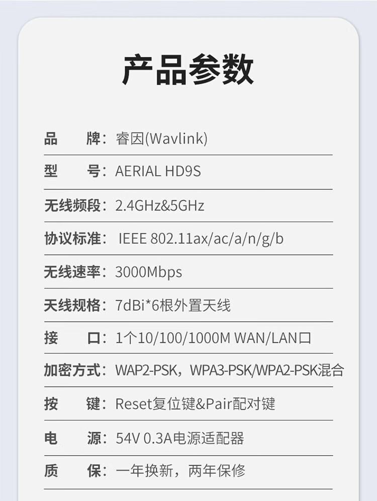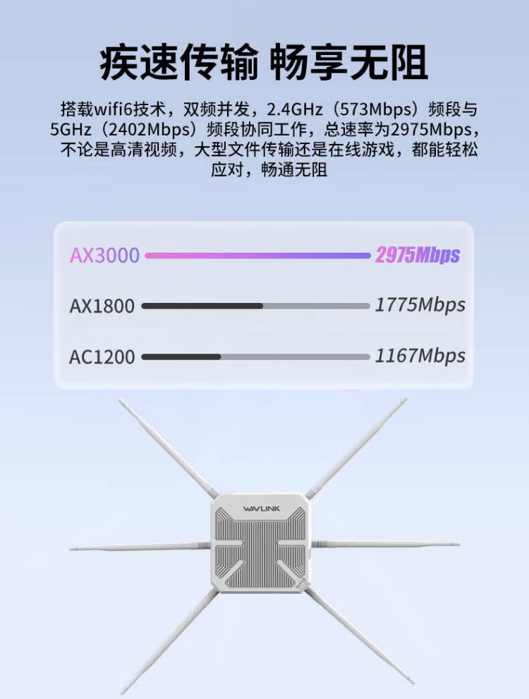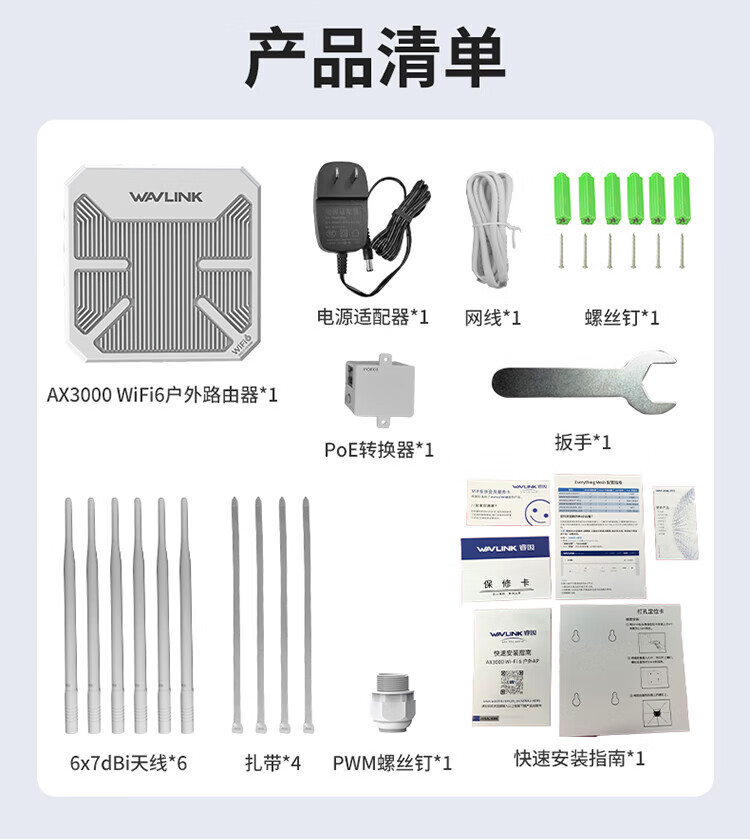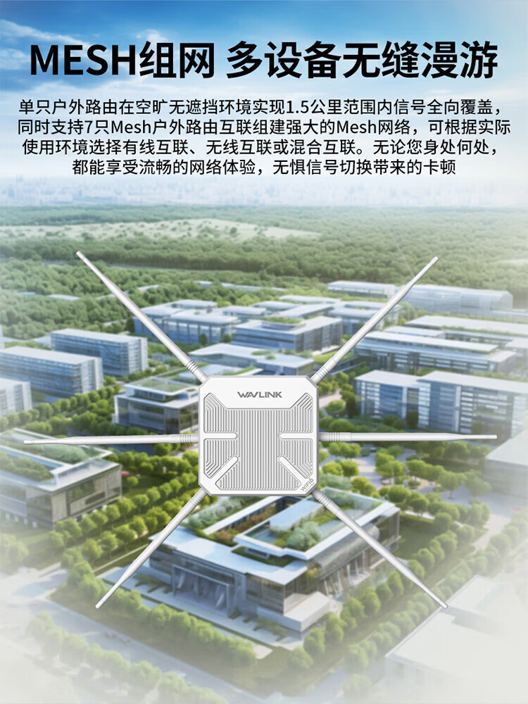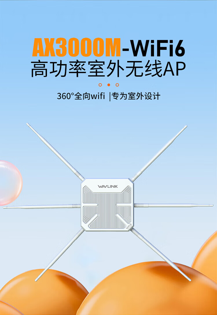 睿因(Wavlink) HD9S AX3000户外路由器WiFi6千兆室外大功率无线AP全向wifi桥接景区校园广场直播工程wifi覆盖