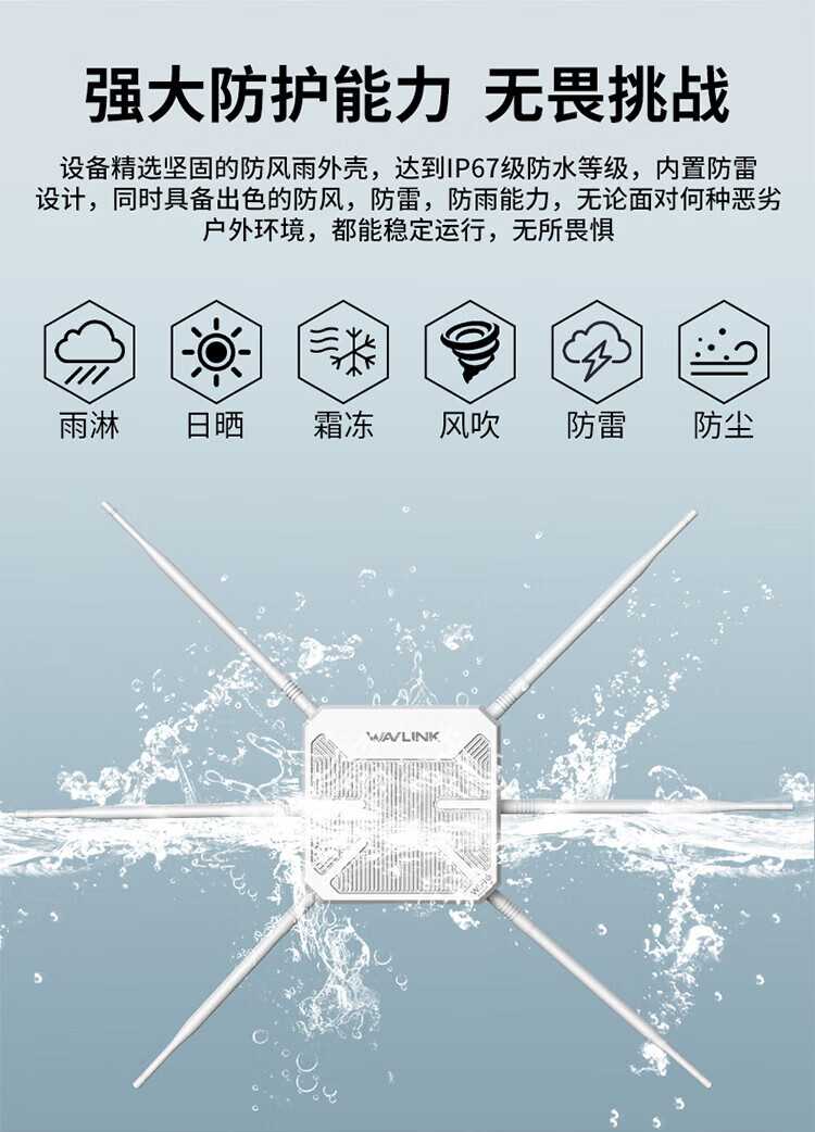 睿因(Wavlink) HD9S  AX3000户外路由器WiFi6千兆室外大功率无线AP全向wifi桥接景区校园广场直播工程wifi覆盖