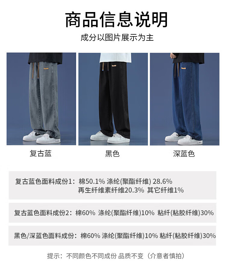 Paul Frank Jeans Men's Autumn American Loose Pants Men's Pants High Street Casual Pants Men's Trendy Brand Retro Blue XL