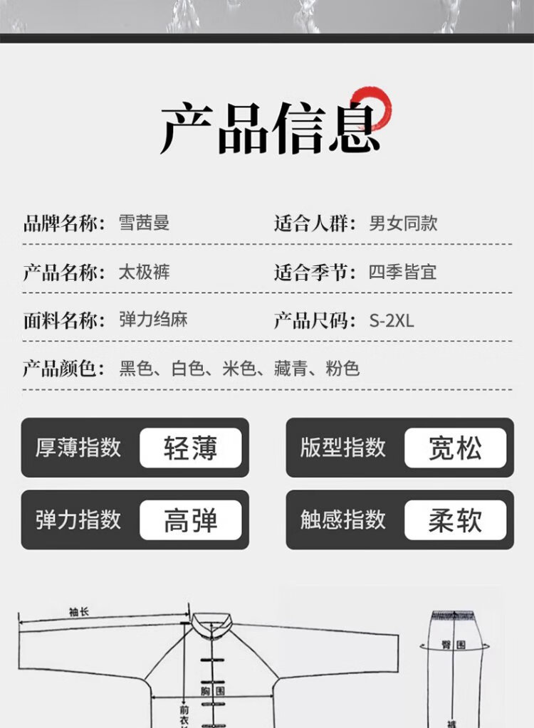 Xue Qianman's new Tai Chi suit for men and women, Tai Chi lantern martial arts pants, autumn and winter Tai Chi eight-section brocade practice suit