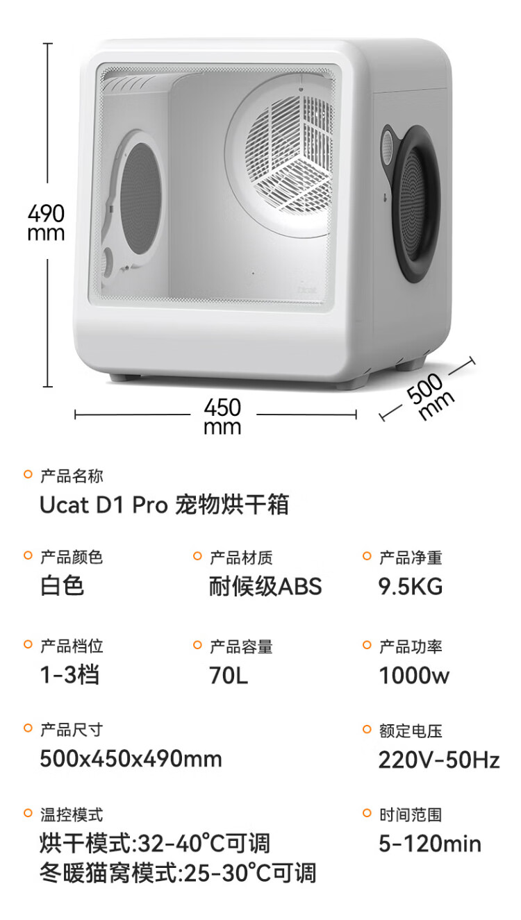 UCAT Caja de Secado para Mascotas D1 Pro Secador Inteligente para Gatos y Perros, Caja de Secado por soplado Completamente automática y silenciosa, Artefacto
