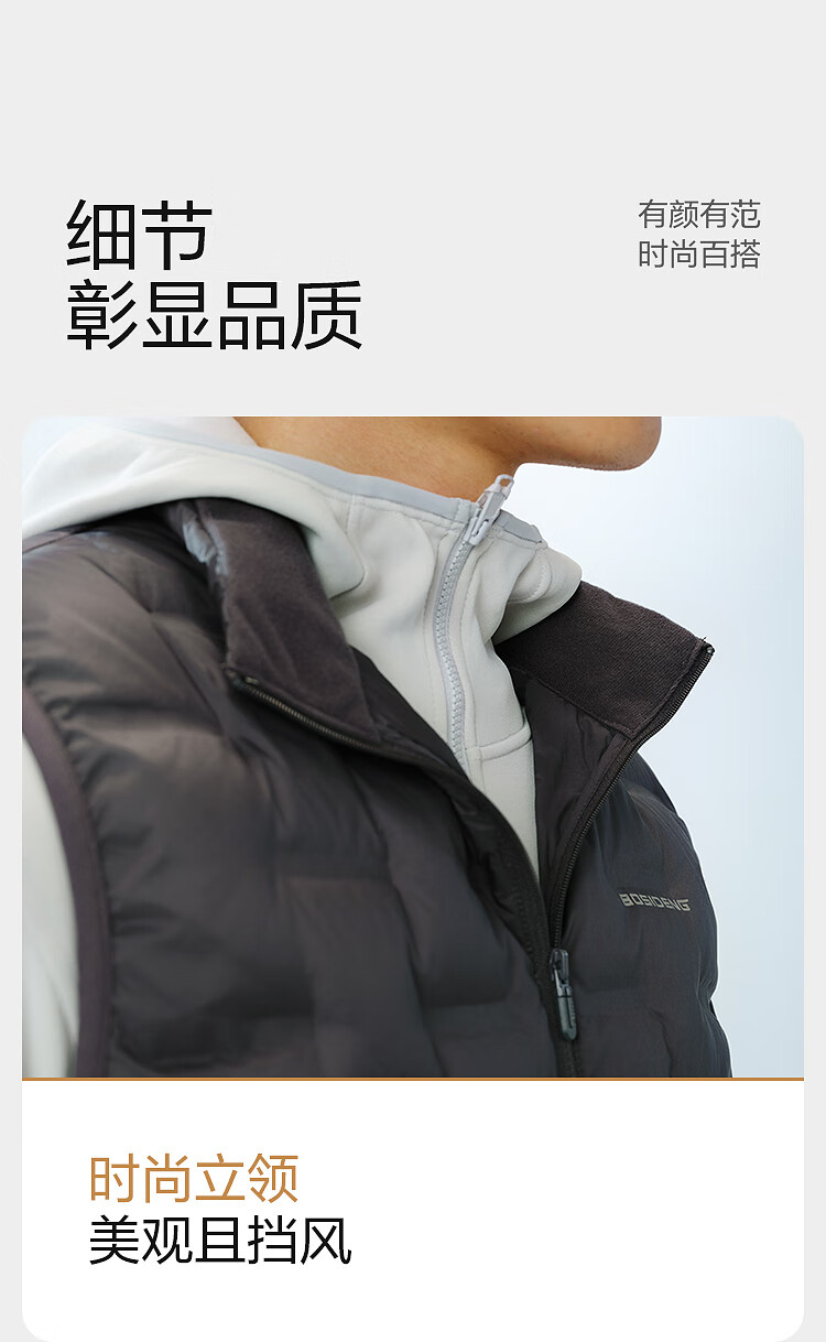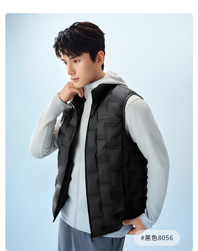 Bosideng 25-year-old goose down vest, same style for men and women, thin, stand-up collar, slim short casual jacket for men and women