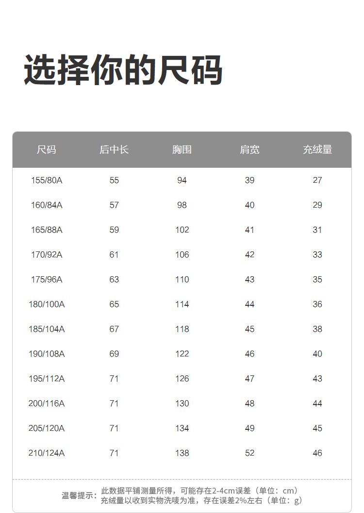 China (cm) 160-165/84-86 165-170 / 88-90 167-172 / 92-96 168-173 / 98-102 170-176 / 106-110