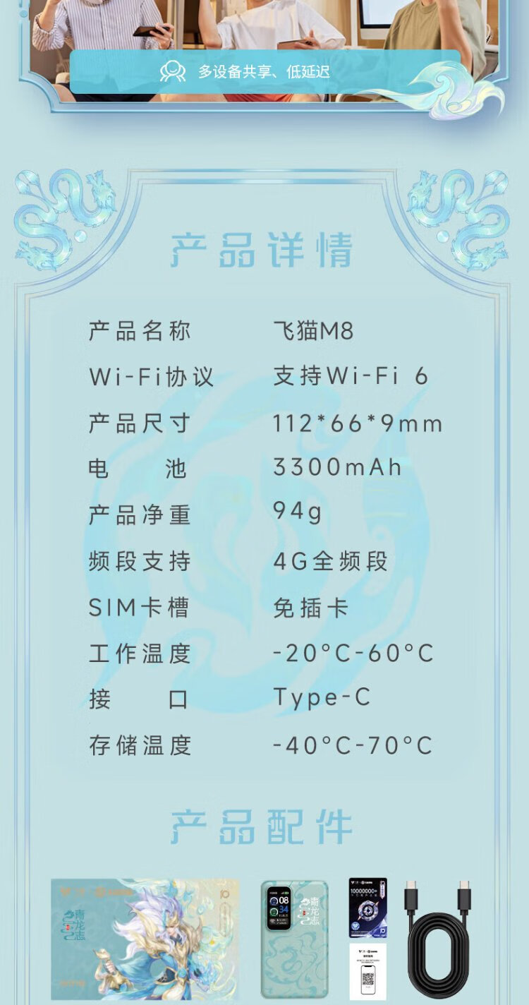 Feimao M8 King of Glory cooperation model 4G portable wifi6 wireless mobile wifi card-free full Netcom wireless Internet truck-mounted accompanying wireless network universal traffic