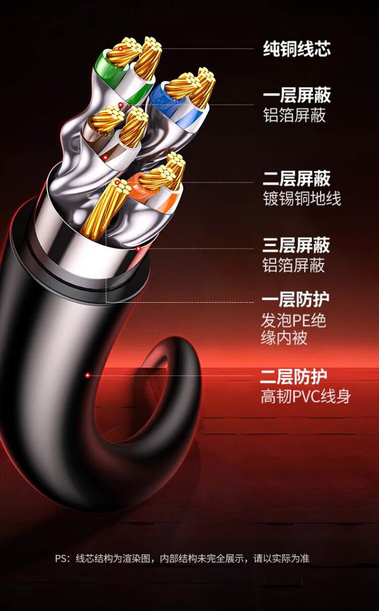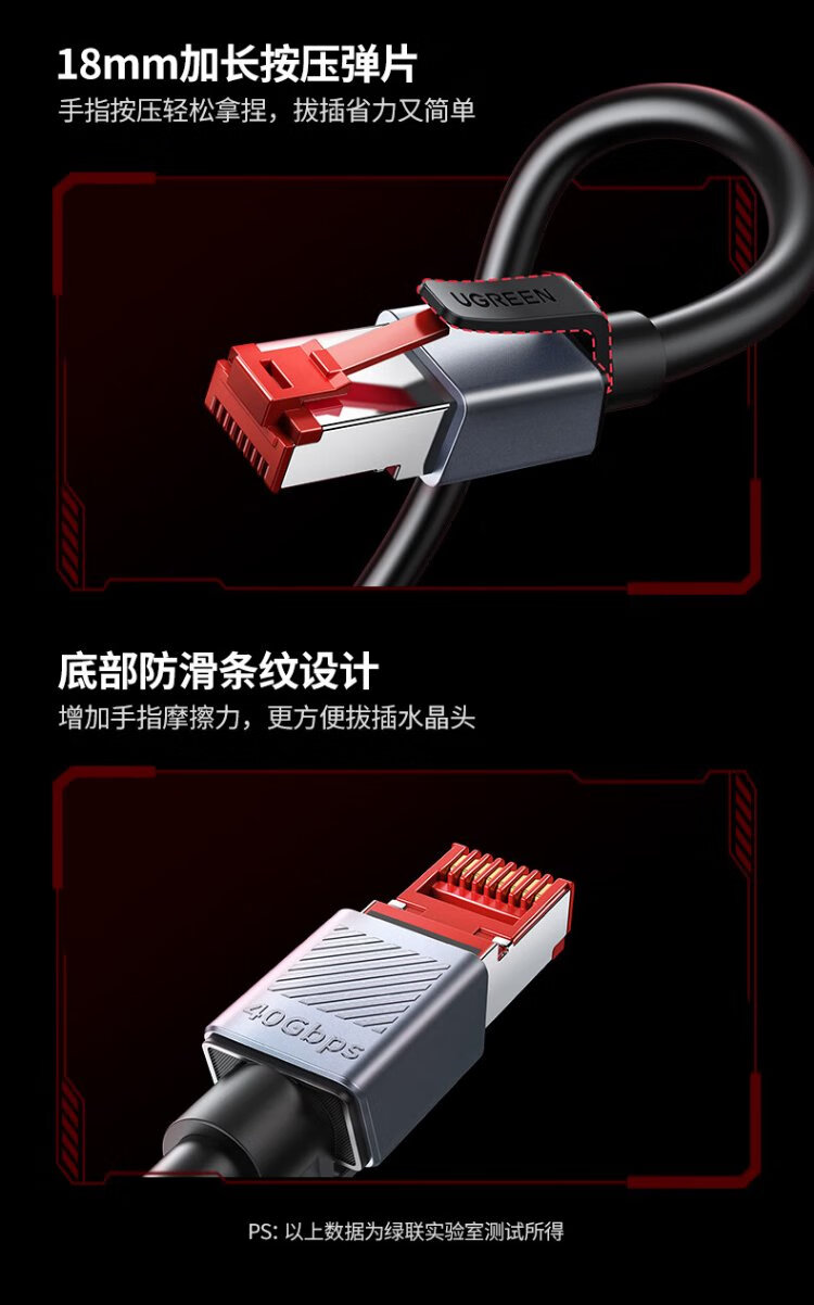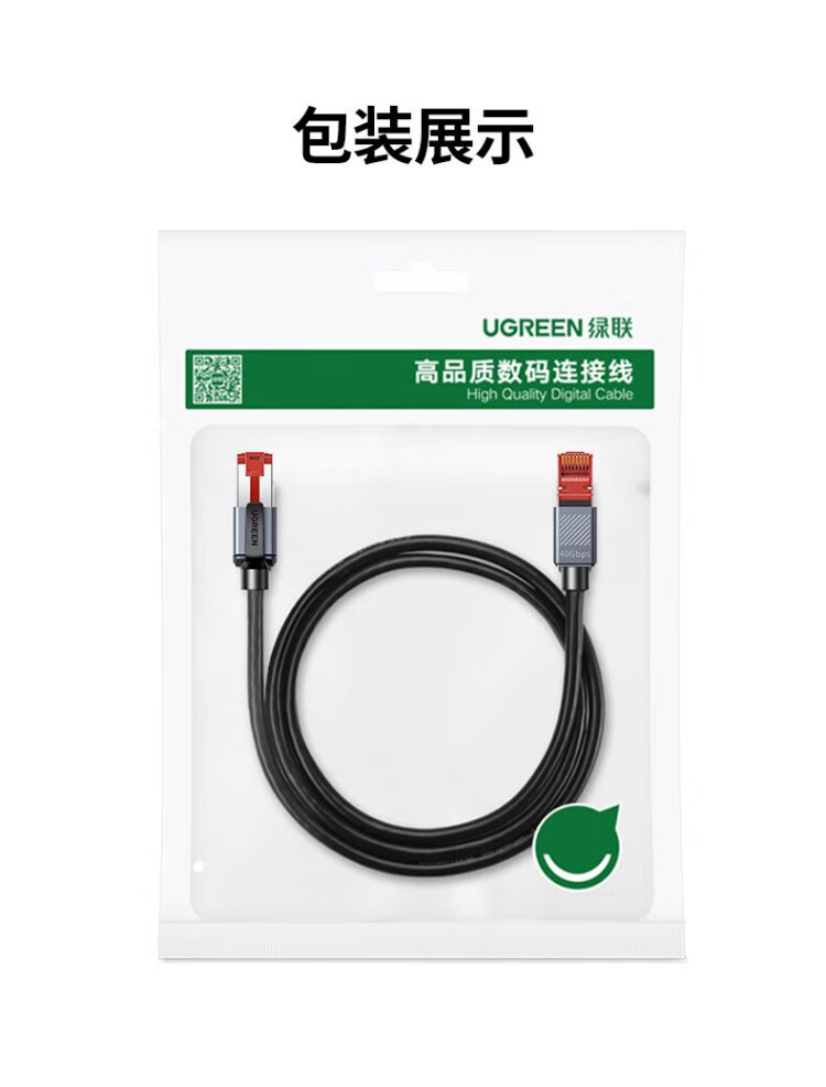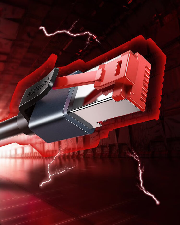 绿联八类网线 Cat8万兆网络连接线 游戏电竞工程家用纯铜8芯双绞线 电脑宽带屏蔽网络跳线 0.5米55185