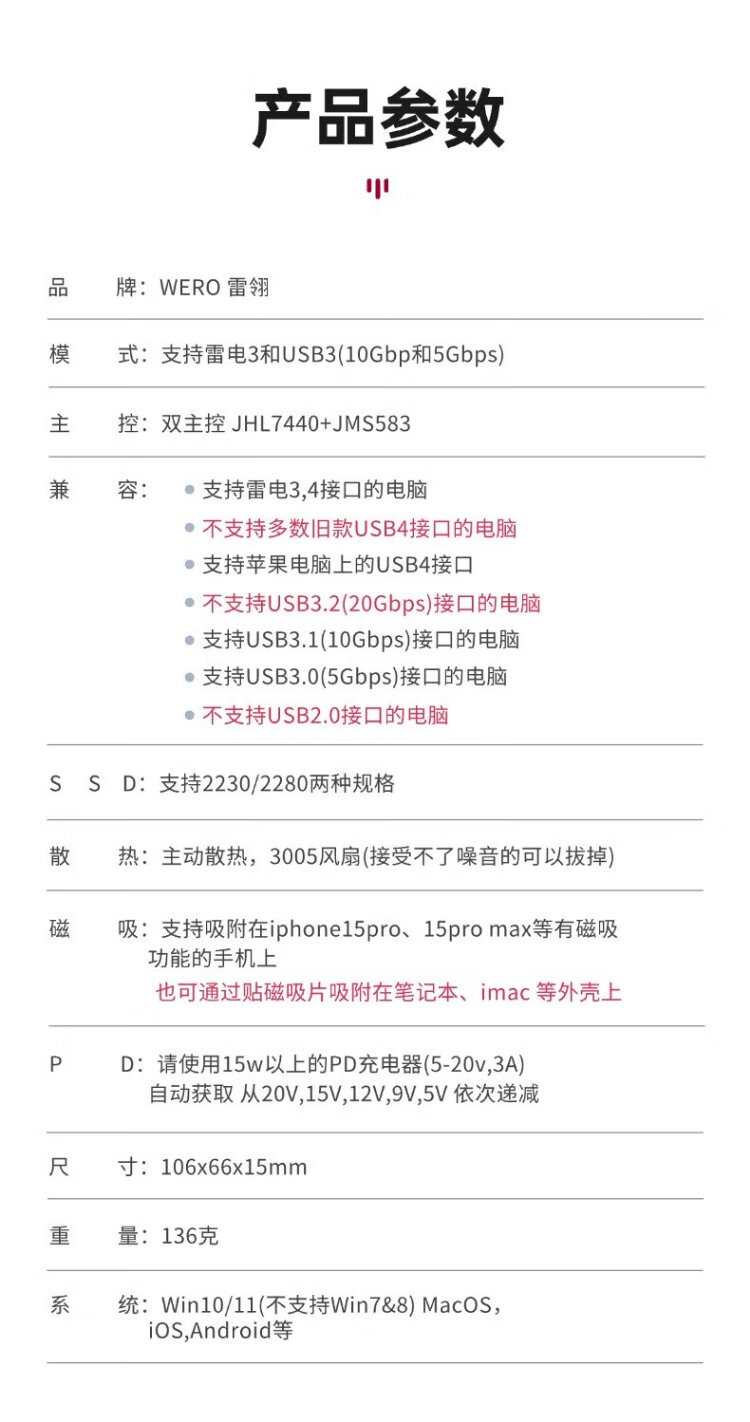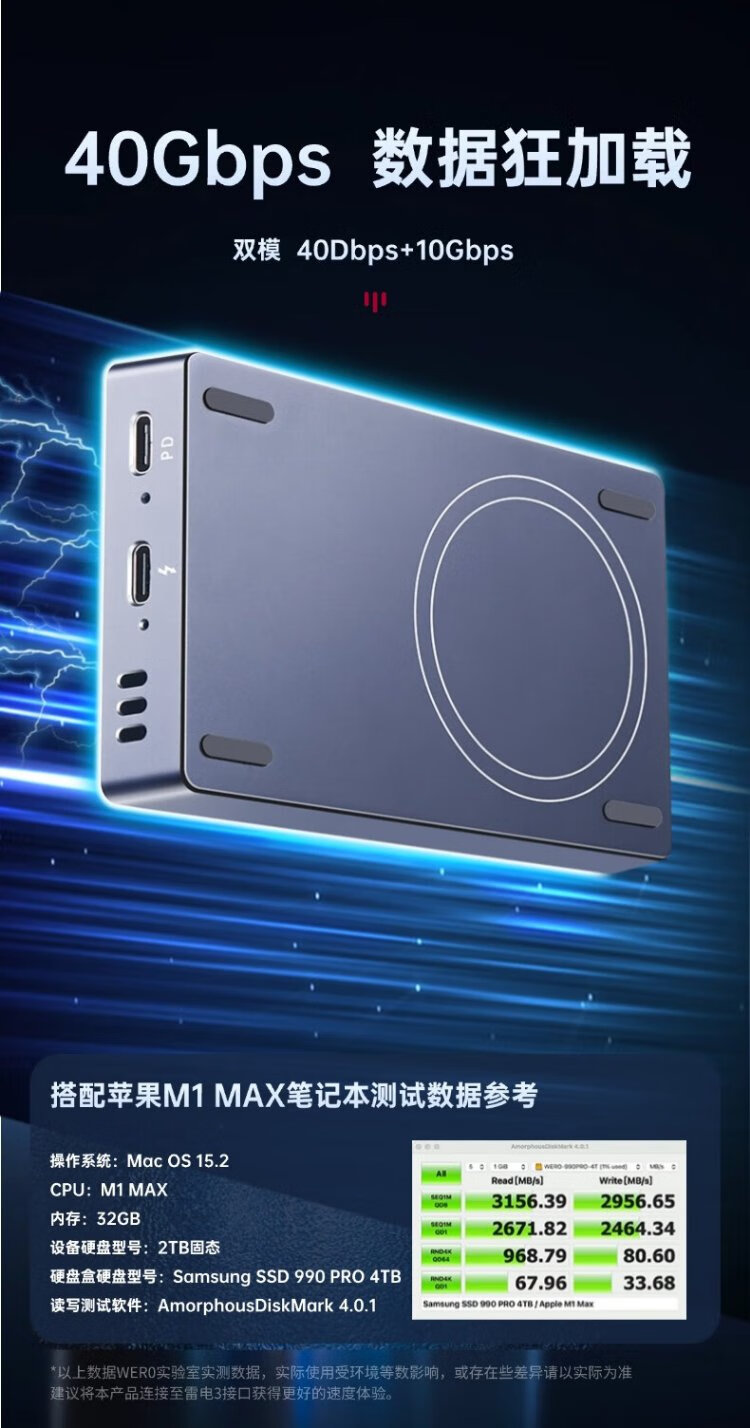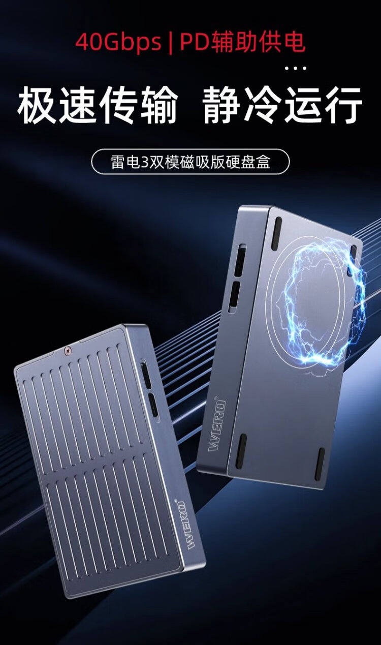 WERO Thunderbolt hard drive enclosure magnetic version NVMe M.2 hard drive enclosure 40Gbps compatible with USB4/USB3 with PD auxiliary power supply suitable for Apple iPhone external recording