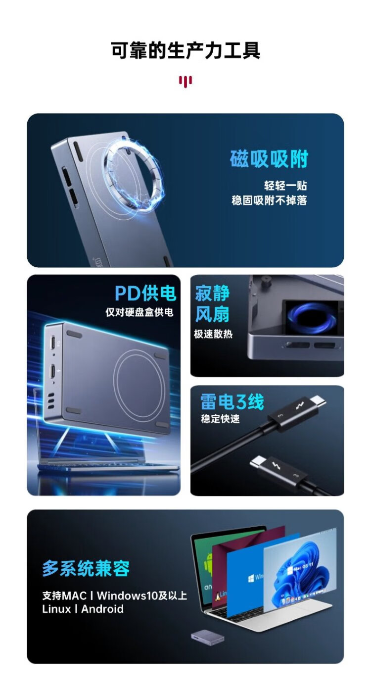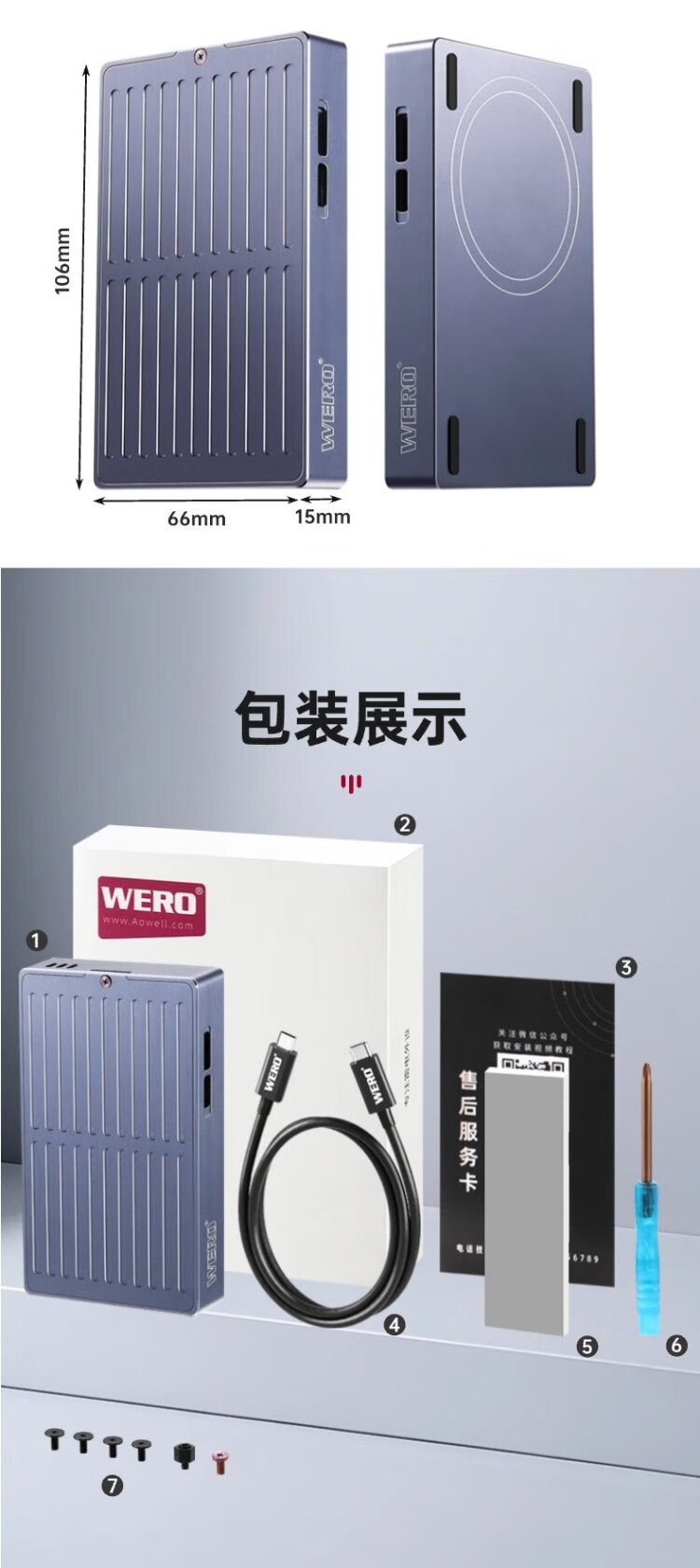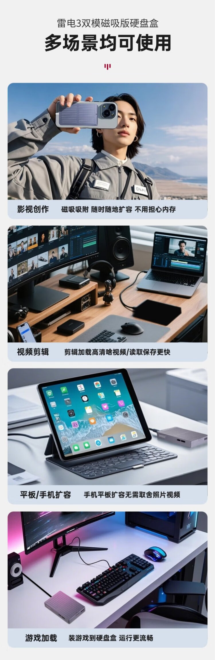 WERO Thunderbolt hard drive enclosure magnetic version NVMe M.2 hard drive enclosure 40Gbps compatible with USB4/USB3 with PD auxiliary power supply suitable for Apple iPhone external recording