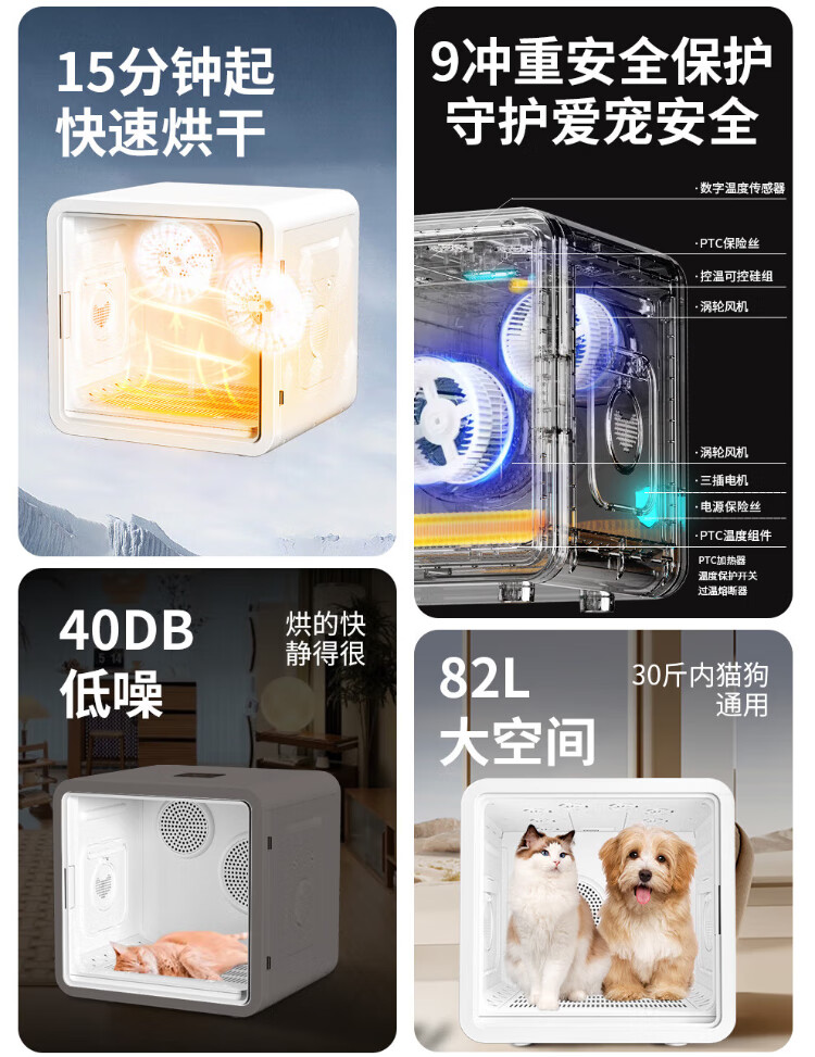 Caja de secado principal para mascotas, secador de pelo automático para gatos, baño en casa y secado de pelo, secador de pelo para perros, motor dual inteligente