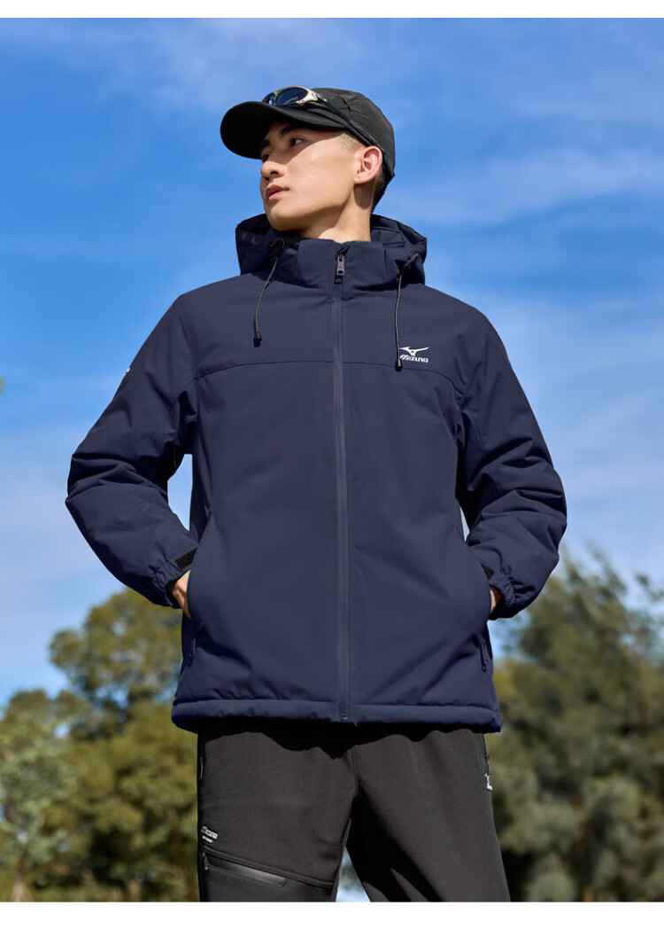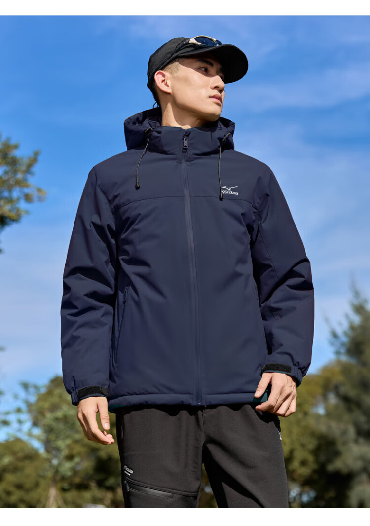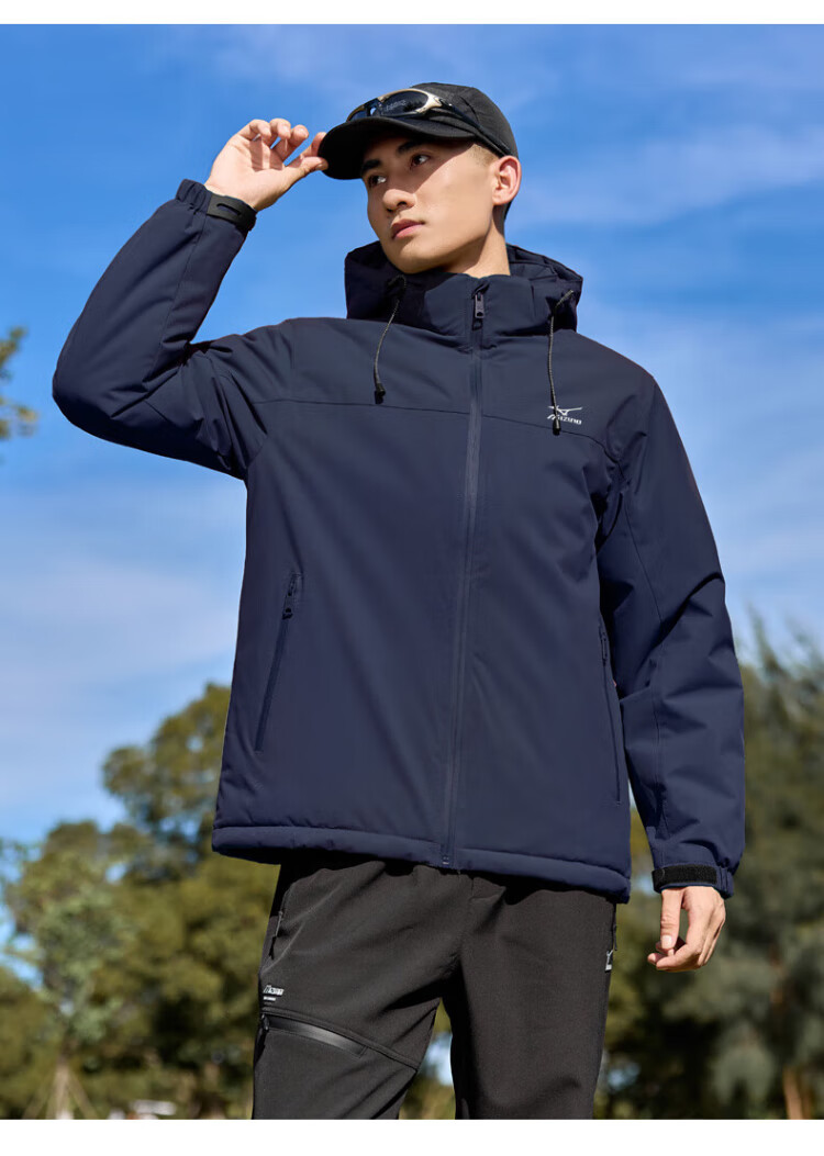 Mizuno уличная хлопковая одежда мужские осенне-зимние куртки с капюшоном ветрозащитная теплая и универсальная одежда для альпинизма темно-синего цвета XL