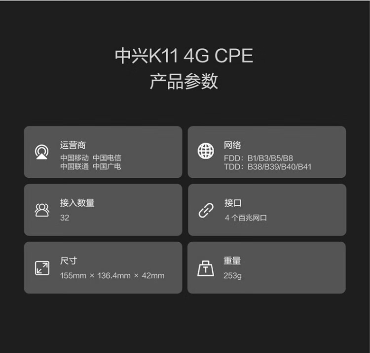 ZTE (ZTE) tarjeta inalámbrica 4g cpe enrutador de conmutación de red dual puerto de red completo Netcom 100M wifi portátil móvil K11