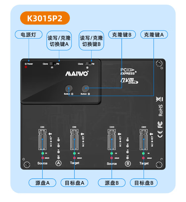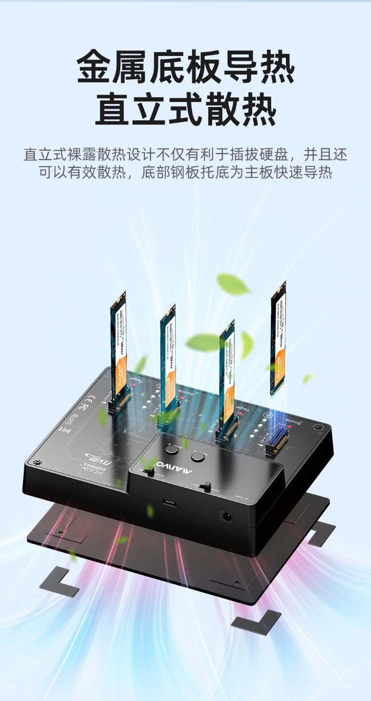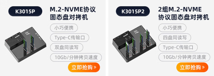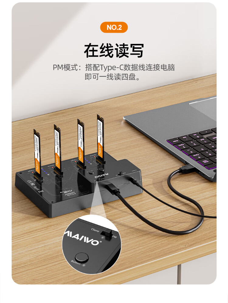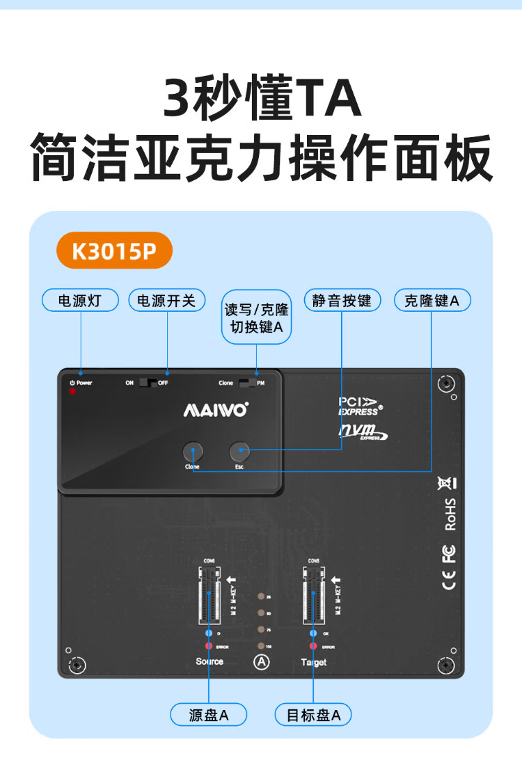 麦沃(MAIWO) M.2 NVMe/AHCI固态硬盘盒拷贝机 Type-C外置笔记本台式固态硬盘读取盒 M.2 NVMe/SATA硬盘对拷机 【工业级】双排NVMe硬盘拷贝机-K3015P2